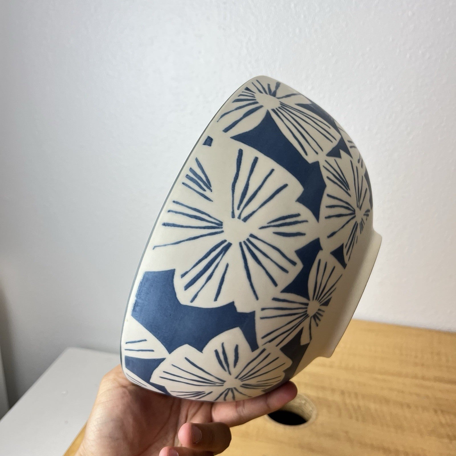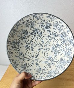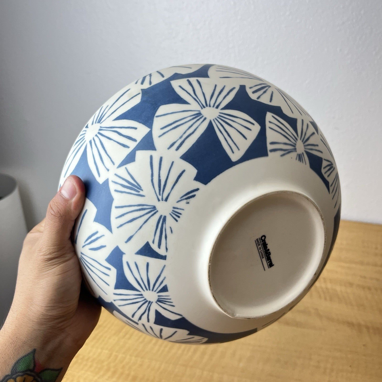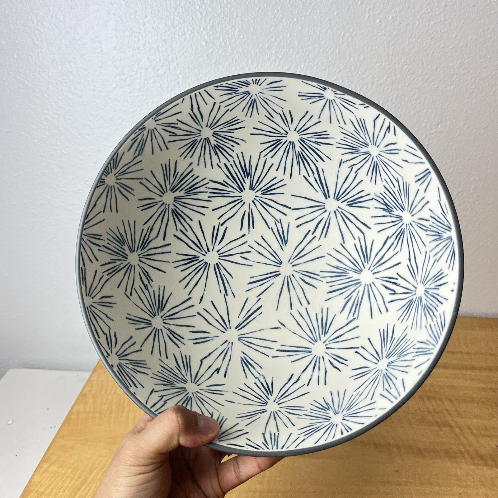 Crate & Barrel Mai Collection Blue Floral Ceramic Bowl Large 9.5″