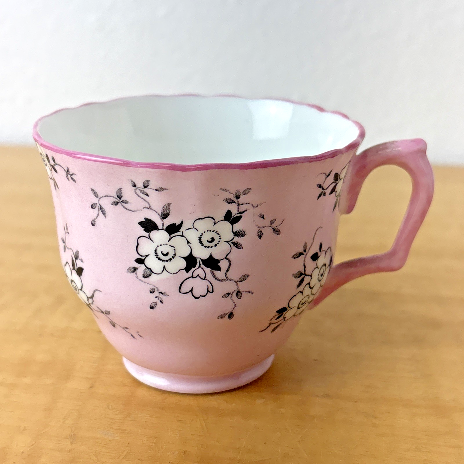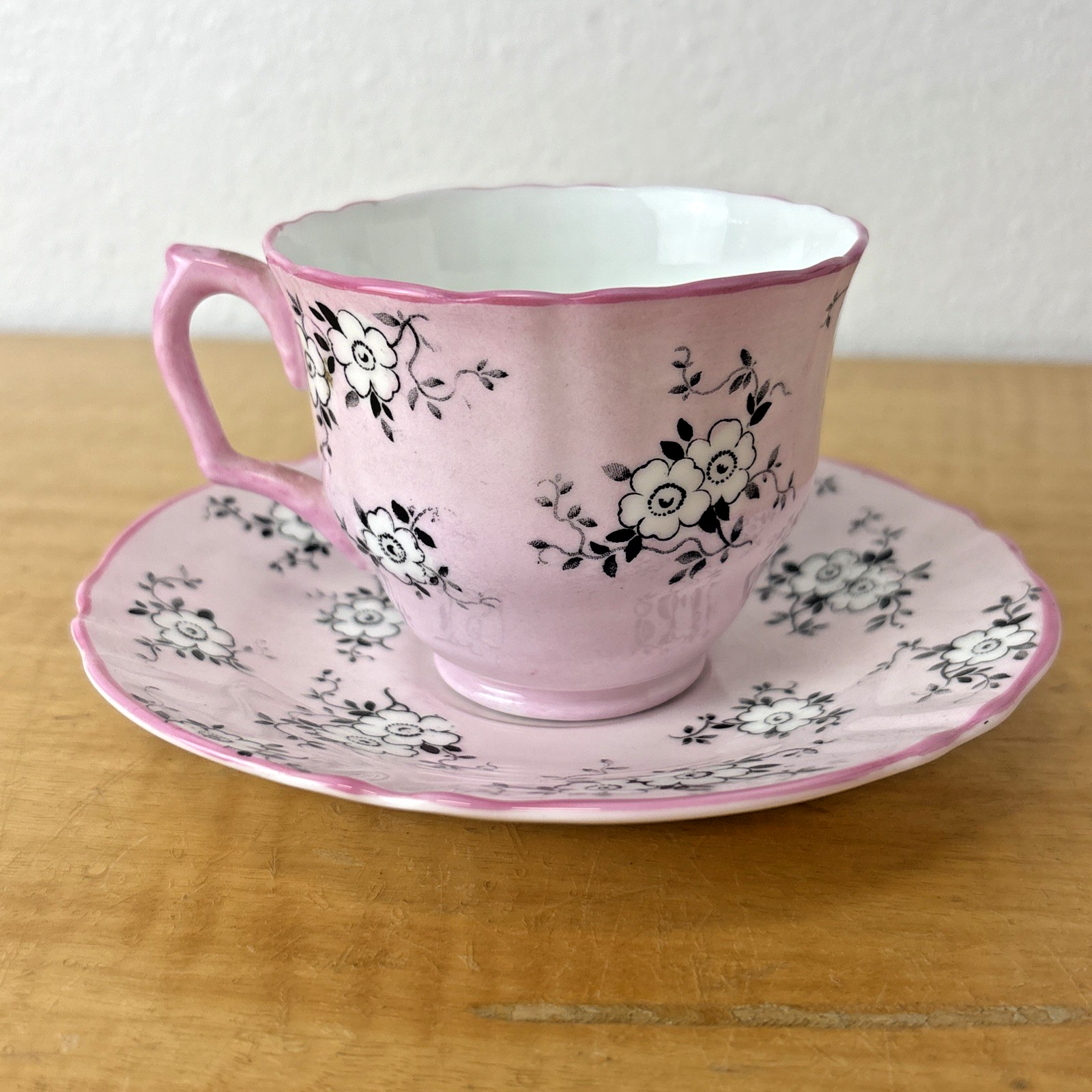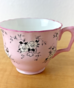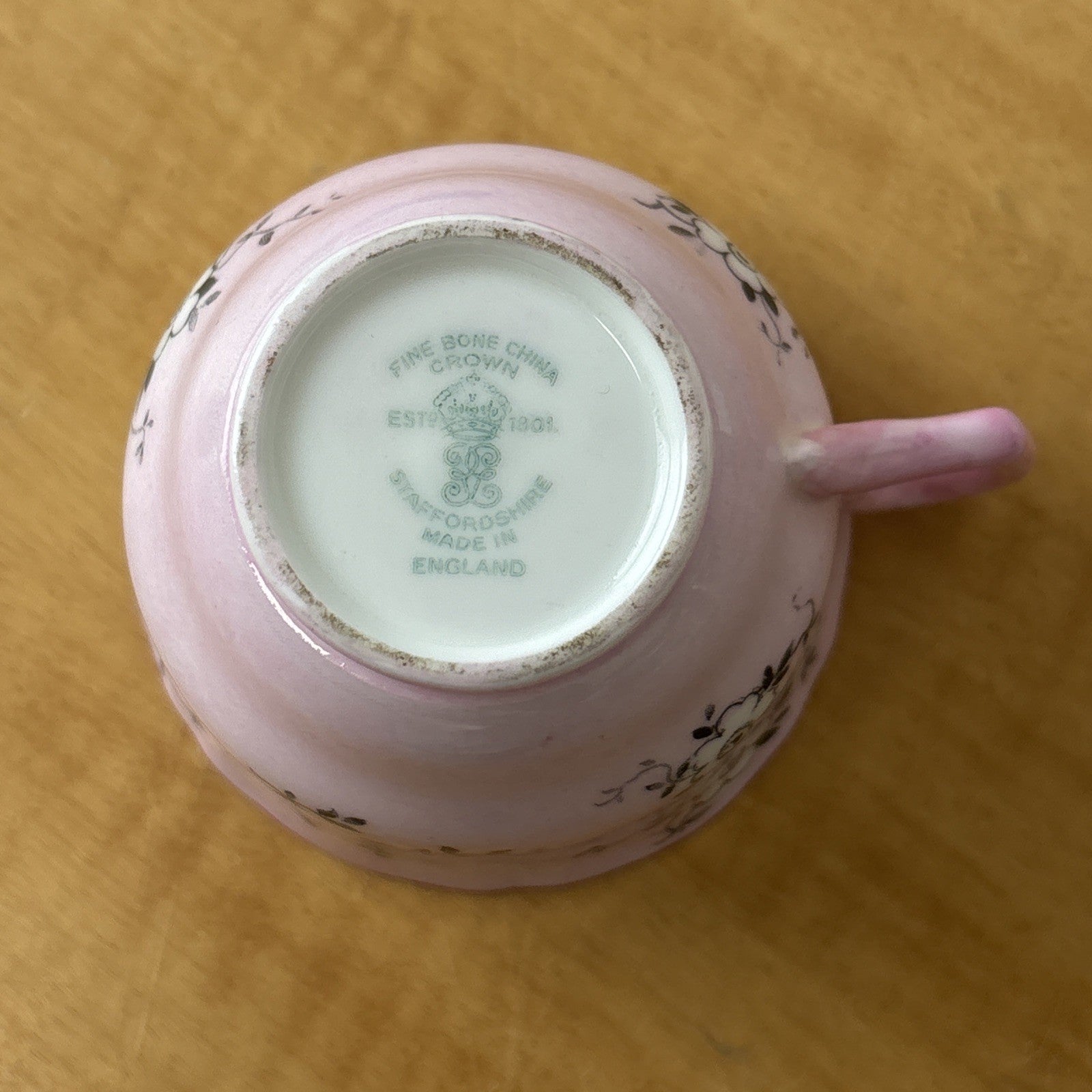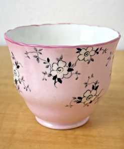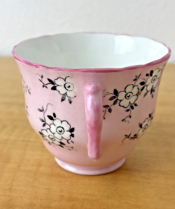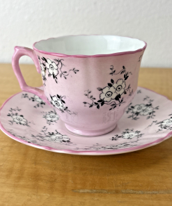 Crown Staffordshire England Footed Demitasse Cup & Saucer Pink White Black