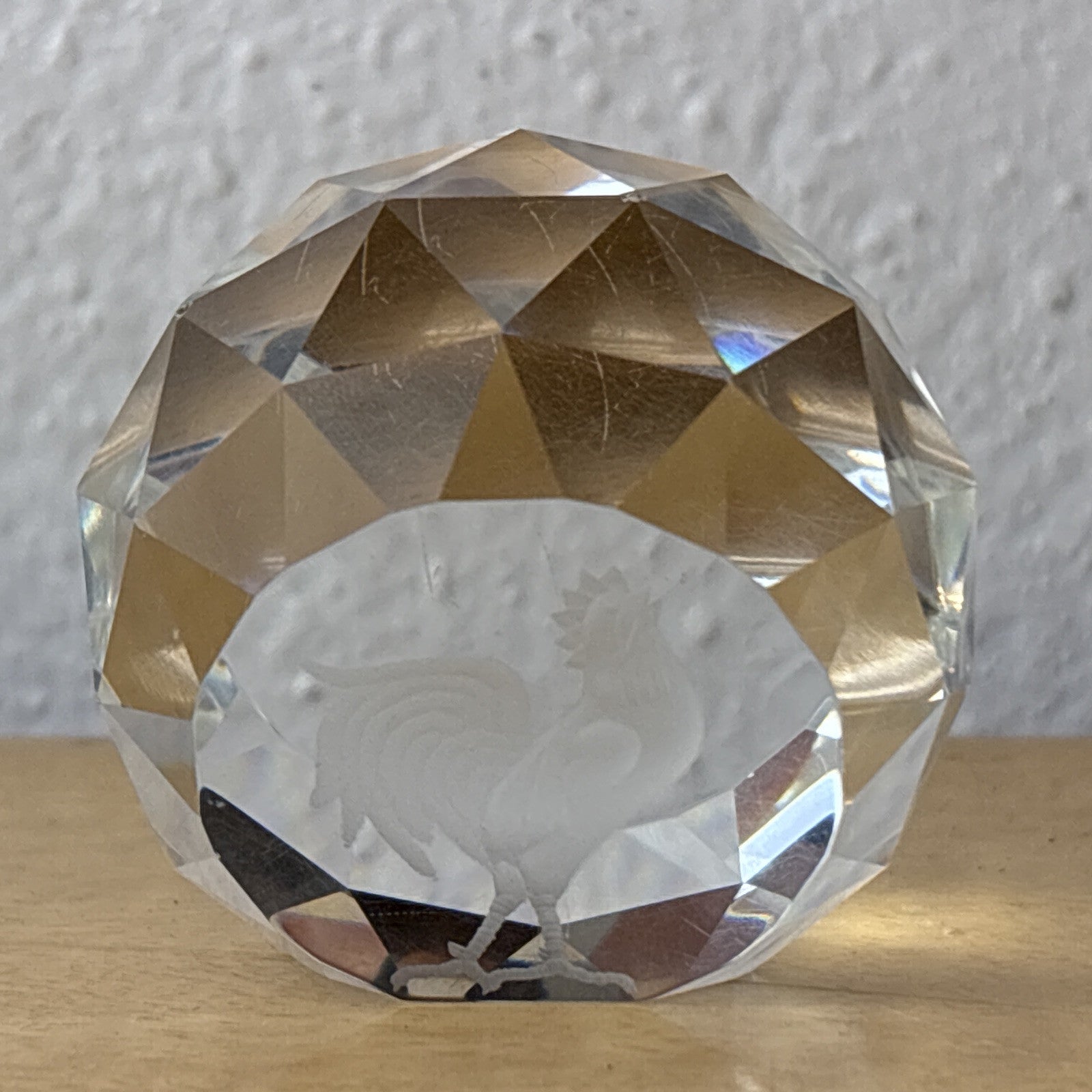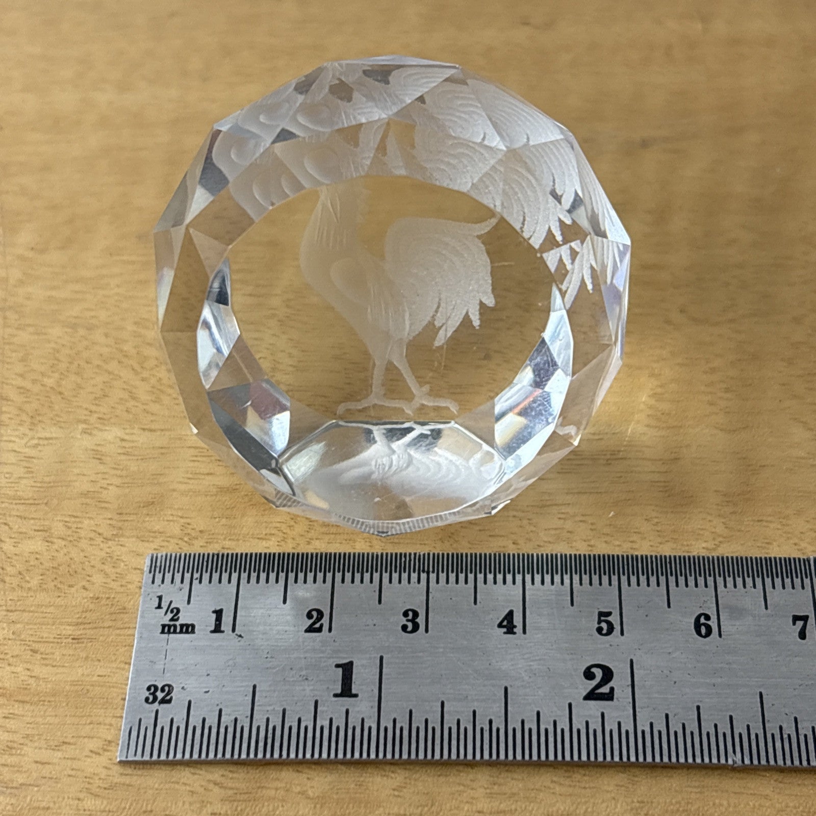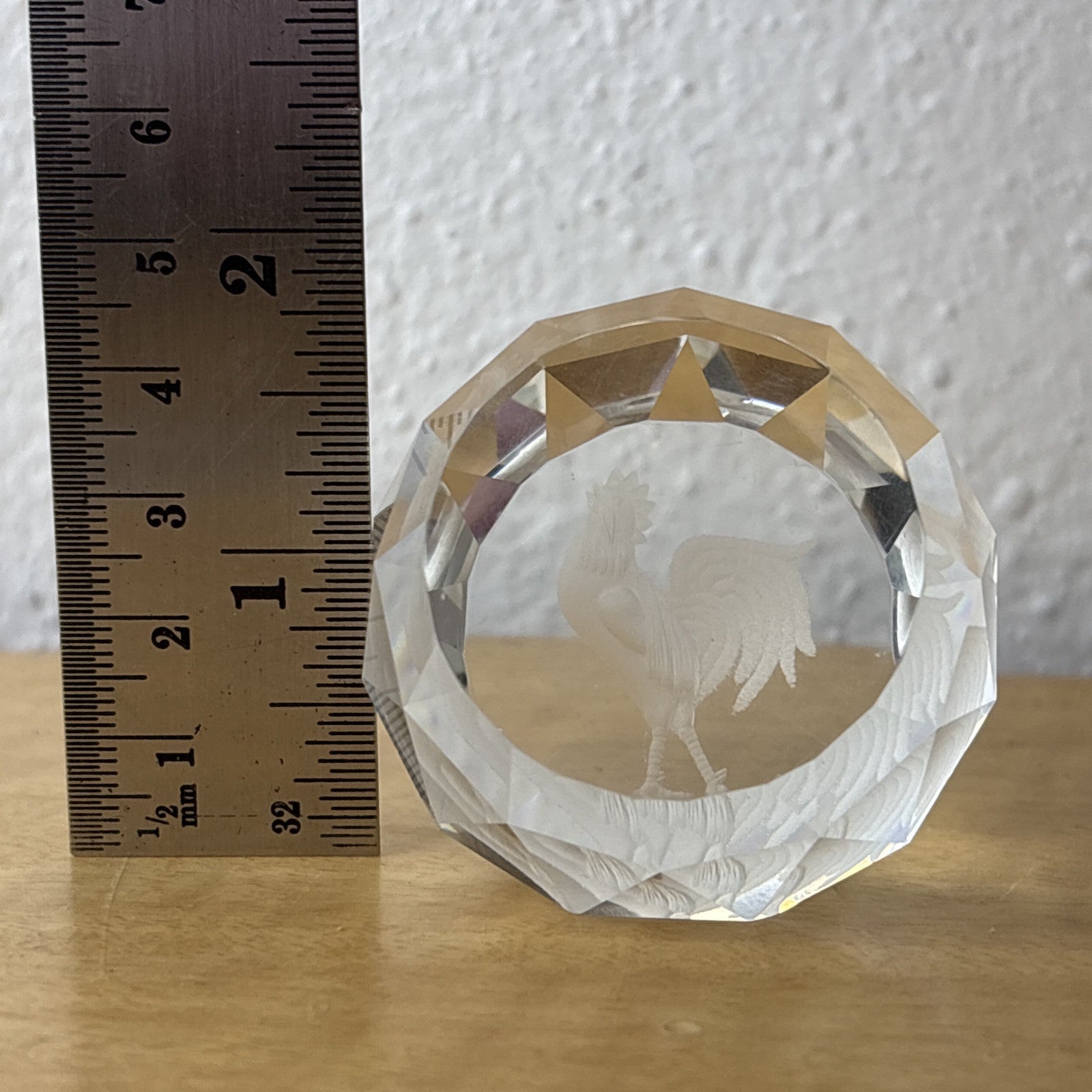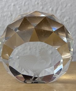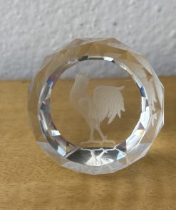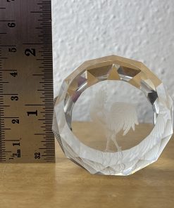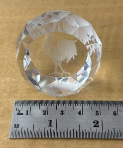 Crystal Etched Paperweight Chicken / Rooster Circle