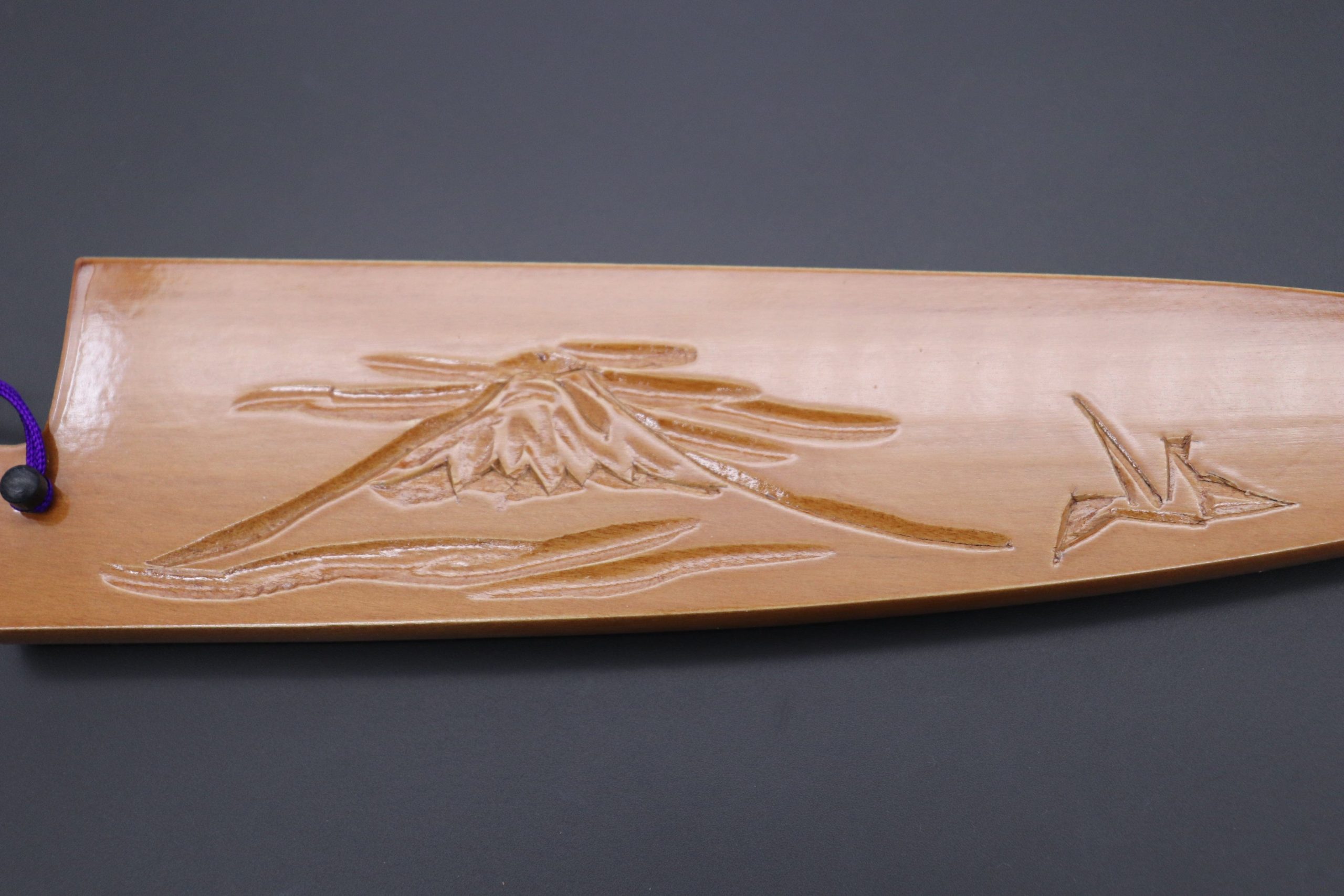 Each Special Edition Wooden Saya has been custom hand carved with a design motif inspired by Japan’s beautiful scenery, nature or culture. This one, is the “Mt. Fuji Special Edition Hand Carved Saya”.