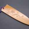The Natural Brown Wood of this Saya is a good match for Dark-colored, Black, or Magnolia Wood Wa handles. Each wooden Saya is carefully handcrafted to fit to each individual blade and includes a Black Pakka Wood pin and a Traditional Braided Cord (That can be used to secure the knife).