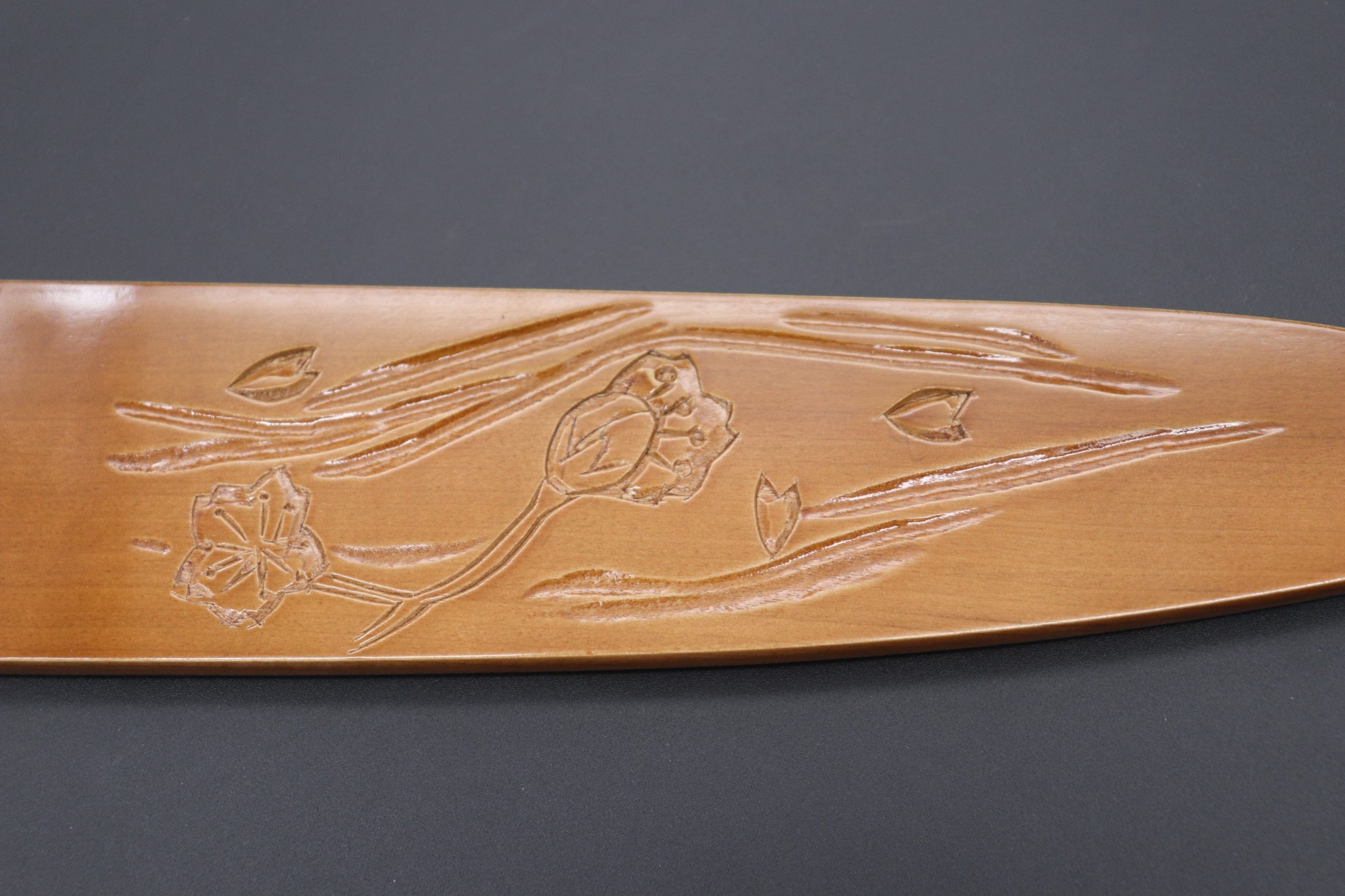 Each Special Edition Wooden Saya has been custom hand carved with a design motif inspired by Japan’s beautiful scenery, nature or culture. This one, is the “Sakura Special Edition Hand Carved Saya”.