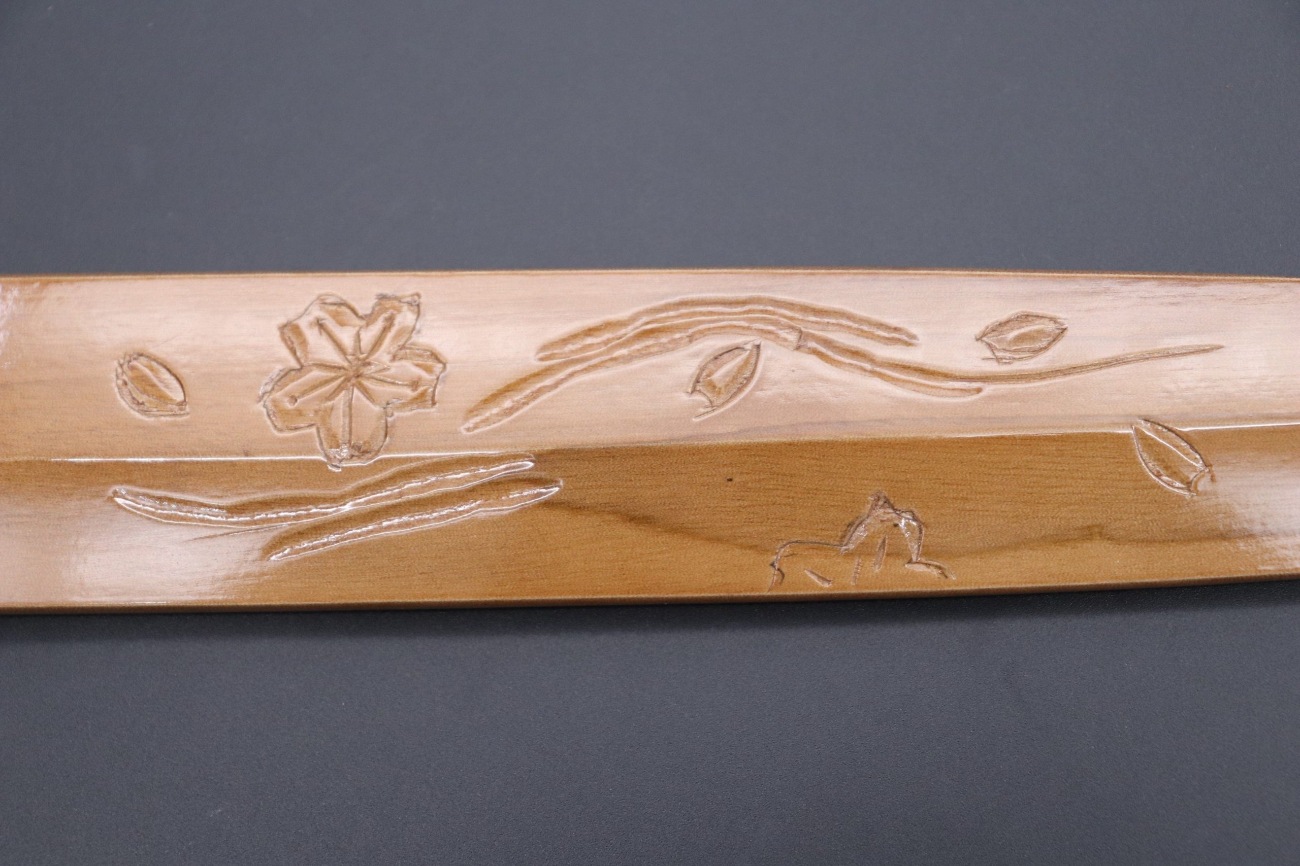 This handmade Wooden Saya is a collaboration between our traditional wooden Saya craftsman and an Experienced Custom Wood Carver, who has recreated the look and feel of Japan’s beautiful nature, scenery and cultural history.