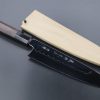 Although some people consider Master Honoura’s knives to be thick and heavy, their geometry is the result of carefully considering every aspect of their function. Contrary to what you might expect, the process of forging a thick blade ‘to shape’ actually requires a lot of time and skill. Master Honoura’s knives are nicely tapered from their heel to the tip and from their spine down to the cutting edge, which is ground very thin behind the edge. We are confident that these knives will provide the high cutting performance that is demanded by Carbon steel lovers!