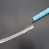 This is the Custom Limited Edition Special Knife Collection. Beautifully polished and finished, Hinoura’s natural gradation color and taste of the modern & traditional Kurouchi Wa Gyuto Knife is fitted a with a Innovative Octagonal Desert Ironwood Handle with Nickel Silver Spacers and a Soft Pink Turquoise Composite Stone Ferrule & Butt. Please feel the harmony of the traditional historical art and modern, high-sense design, quality.
