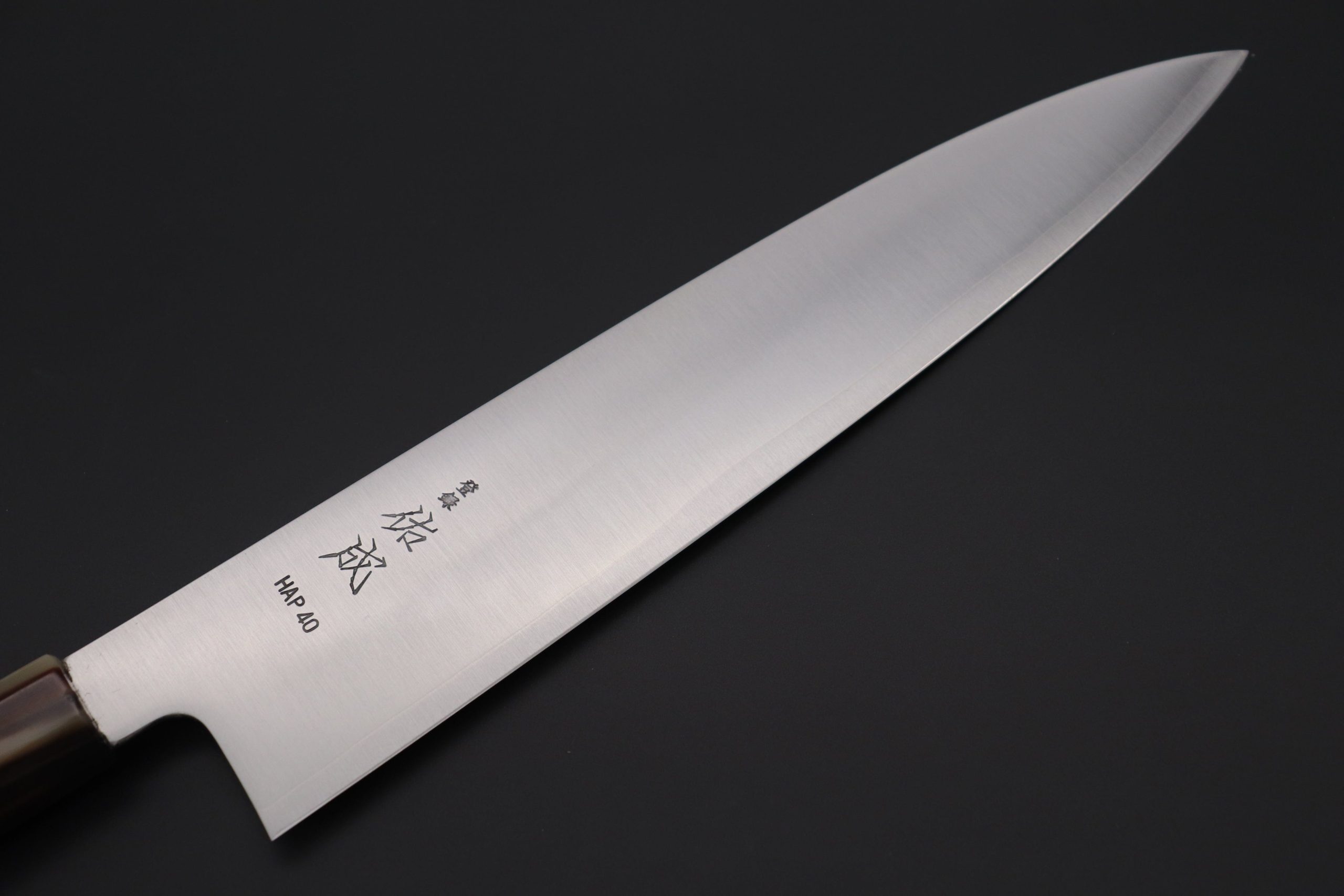 Hitachi HAP-40 is currently one of the most mysterious and attractive steels produced in Japan. This hi-tech powdered metal steel alloy has a very rich chemical position and, when it is forged and heat-treated properly, we believe that it probably offers better cutting performance and edge retention than any other high-quality Japanese steel.