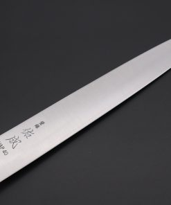 The lightweight, the long, narrow, graceful blade of the Wa Sujihiki is particularly useful for trimming away sinew and fat from meat, finely slicing meat or boneless fish, or for filleting and skinning fish. The long blade allows the meat or fish to be cut in one single drawing motion, from heel to tip.