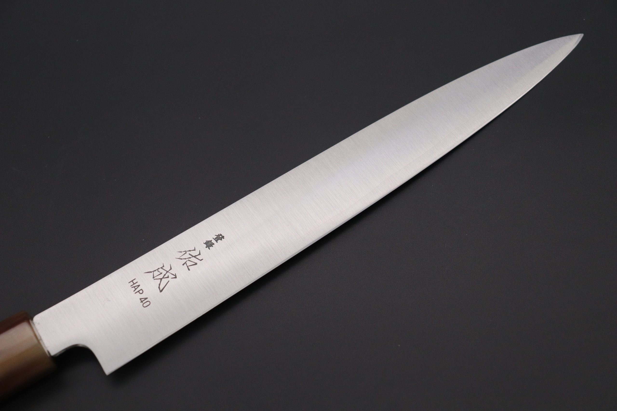 Hitachi HAP-40 is currently one of the most mysterious and attractive steels produced in Japan. This hi-tech powdered metal steel alloy has a very rich chemical position and, when it is forged and heat-treated properly, we believe that it probably offers better cutting performance and edge retention than any other high-quality Japanese steel.