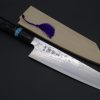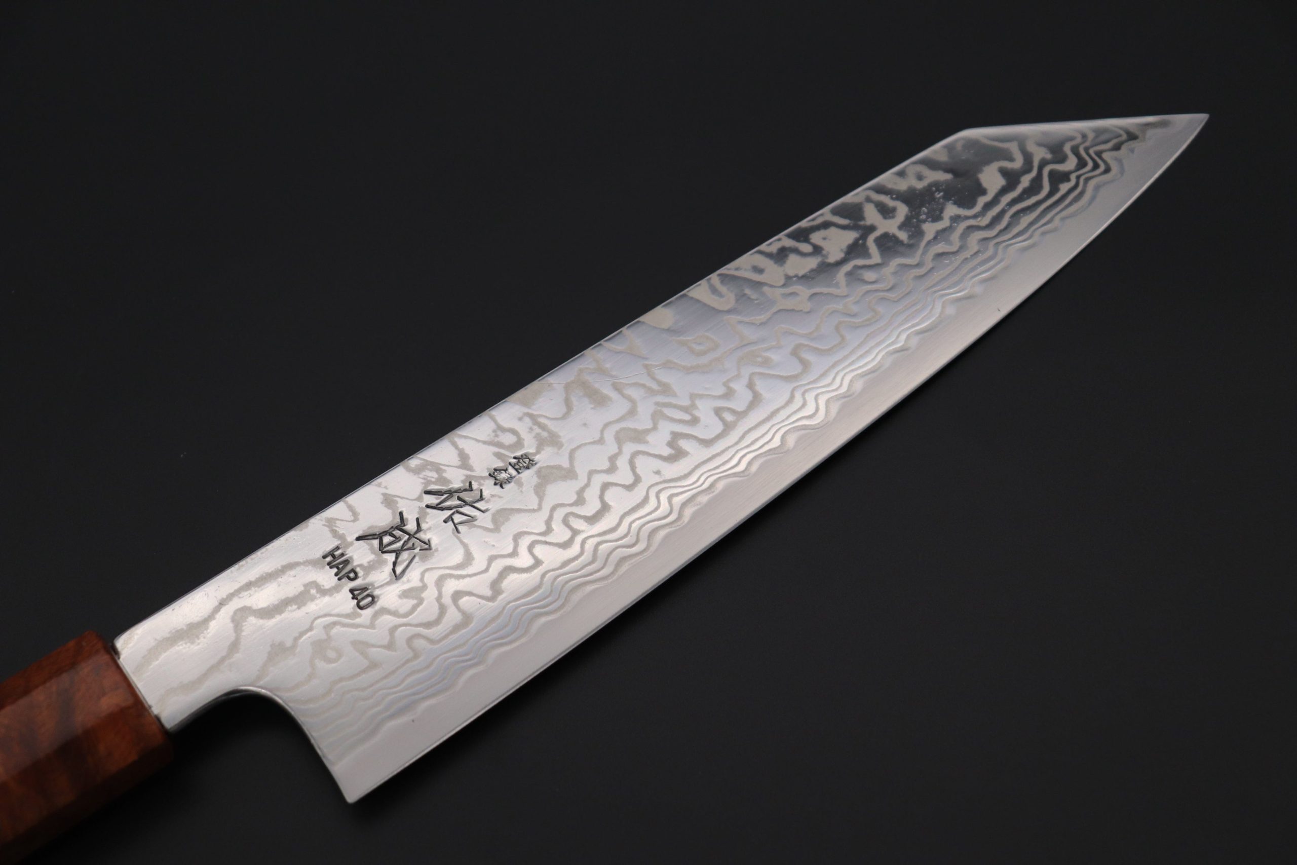 Sukenari’s knowledge of traditional forging processes and their extensive experience with modern, high performance, steels proved to be invaluable while perfecting these new HAP-40 knives. Master Hanaki, Sukenari’s innovative and energetic knife maker and Master forge-smith, has successfully managed to extract the best cutting performance and edge retention from these HAP-40 knives (HRc. 68). They are perfect for customers who love testing exotic hi-tech steels, or those who appreciate knives with outstanding cutting performance and edge retention.