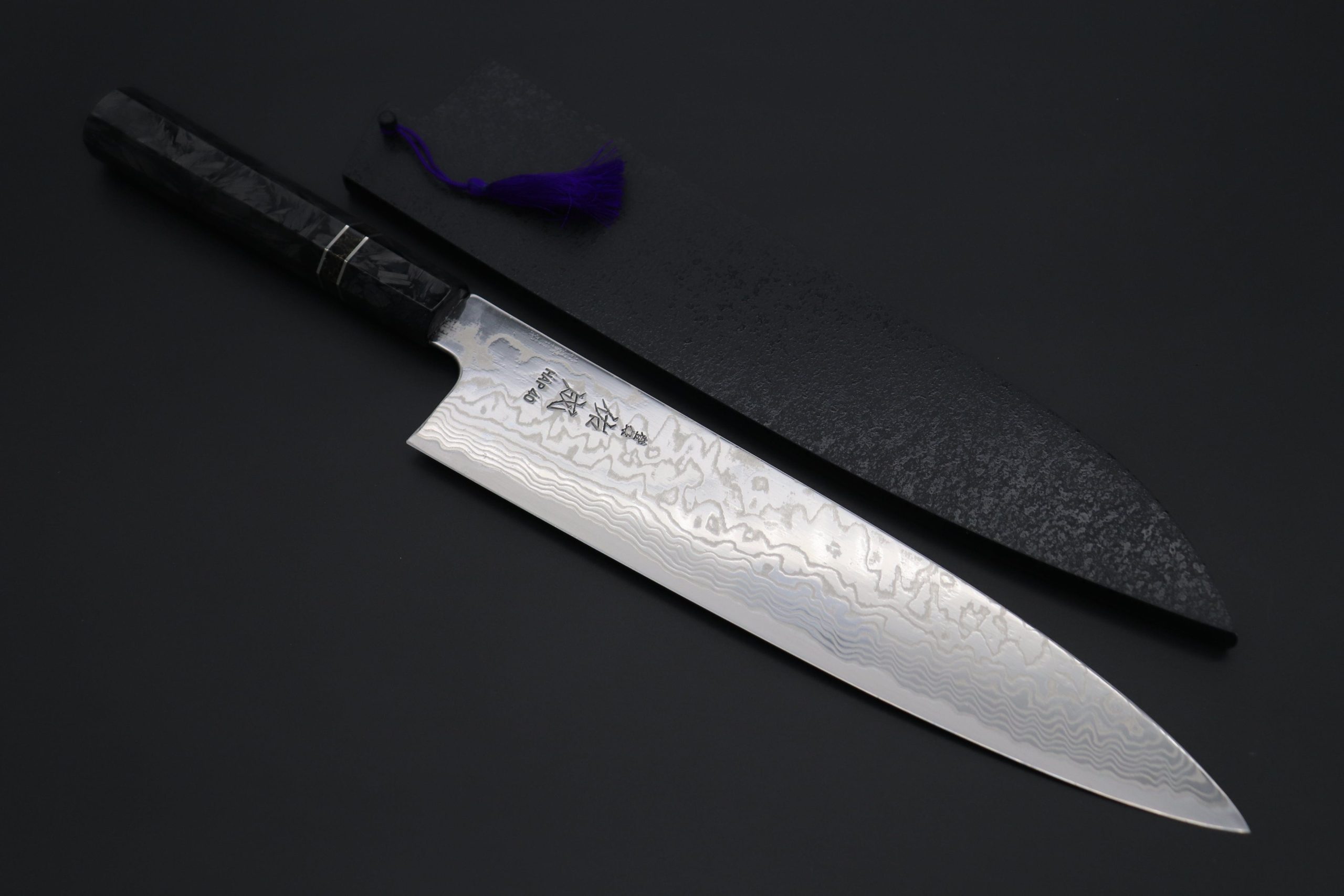 This is the Custom Limited Edition and result for making one of a kinds, Custom Limited Edition Sukenari HAP-40 Nickel Damascus Wa Gyuto 270mm knife.