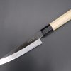 For your information, Japanese Kitchen knives are generally designed for right hand use with a slightly thicker and rounded grinding on the right side blade and a less rounded (almost straight flat) grinding on the left side blade. However, both right and left hander can use the knives that have double bevel edge sharpened 50/50 without problems.
