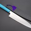 This Sukenari ZDP-189 Nickel Damascus knife is fitted with a Innovative Octagonal Soft Pink Turquoise Composite Stone Handle. For safekeeping, this knife comes with a matching Black Lacquered wood Saya (Sheath) with a black pakkawood Saya pin.