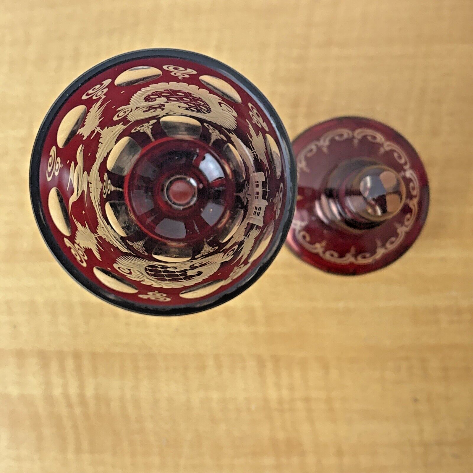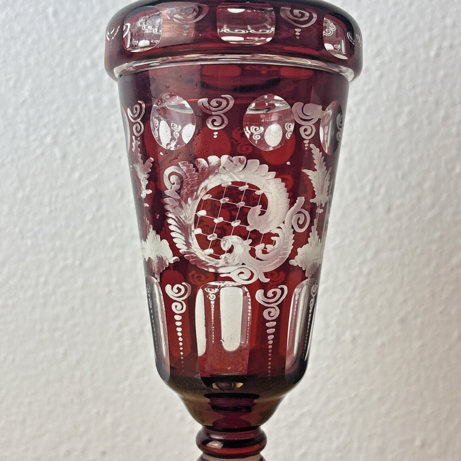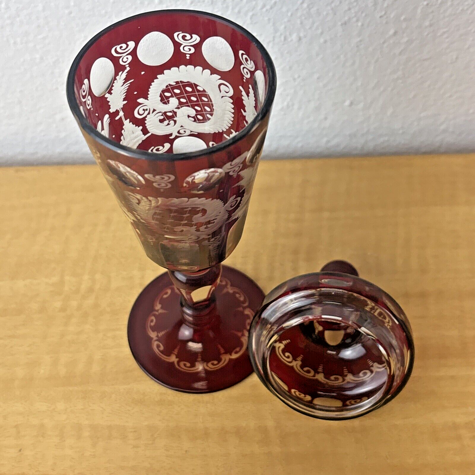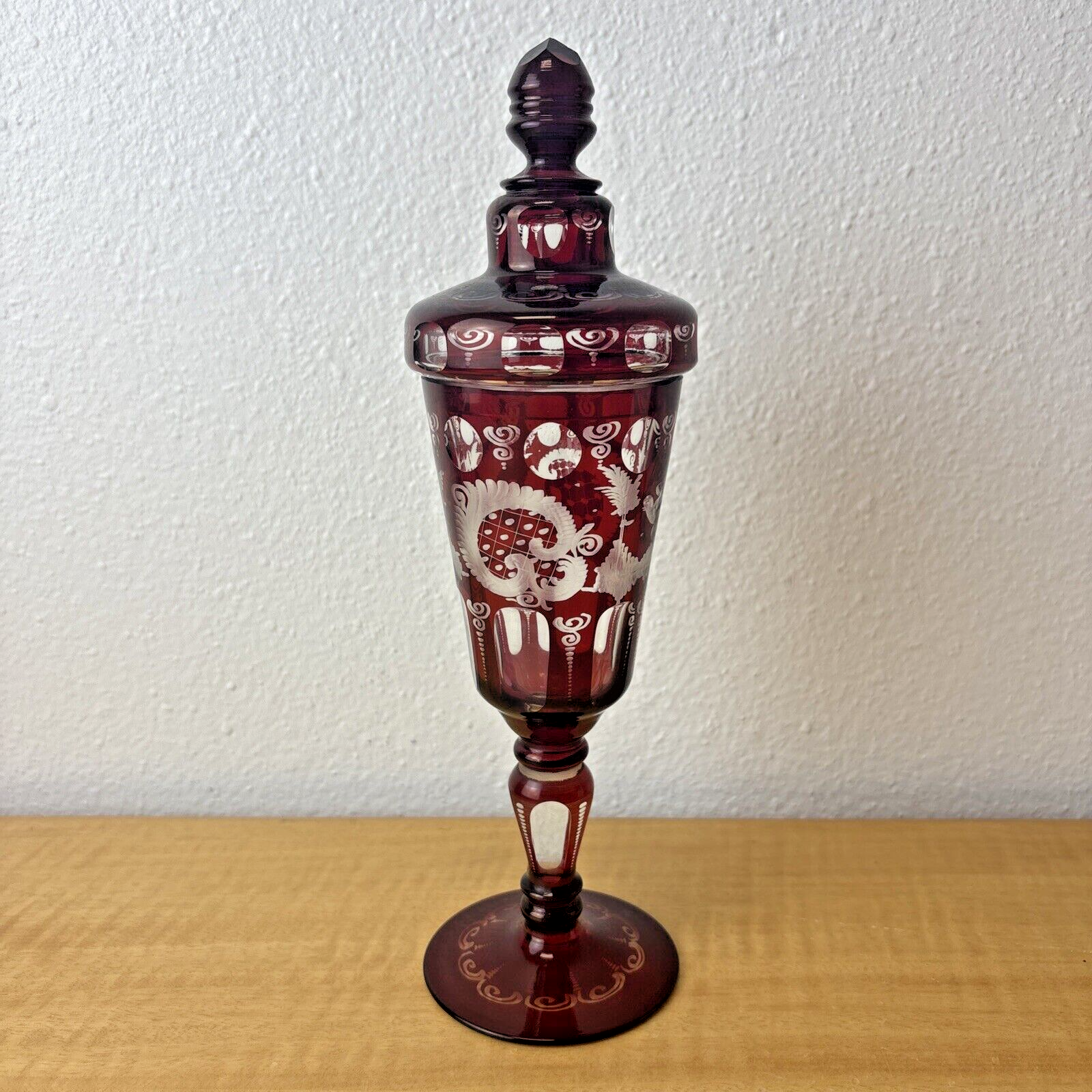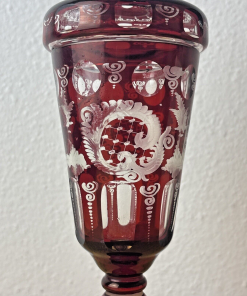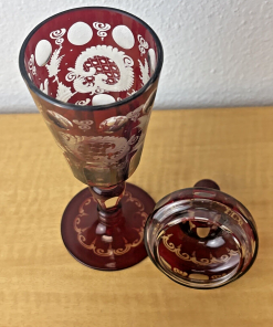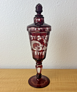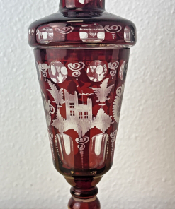 CZECH EGERMANN RUBY CUT TO CLEAR BLACK FOREST COVERED CANDY JAR HTF