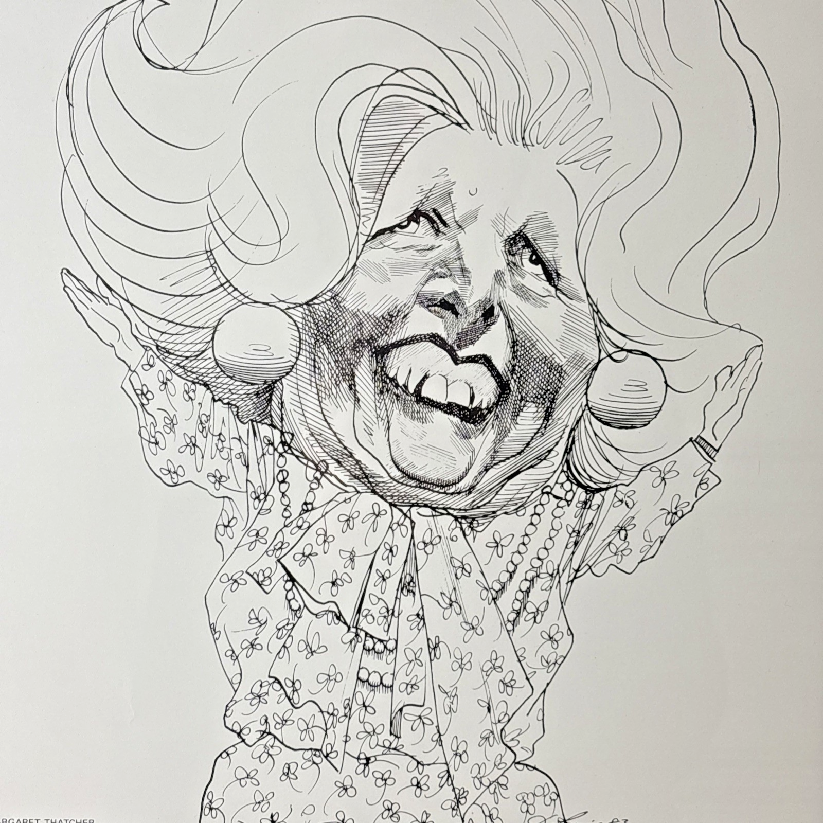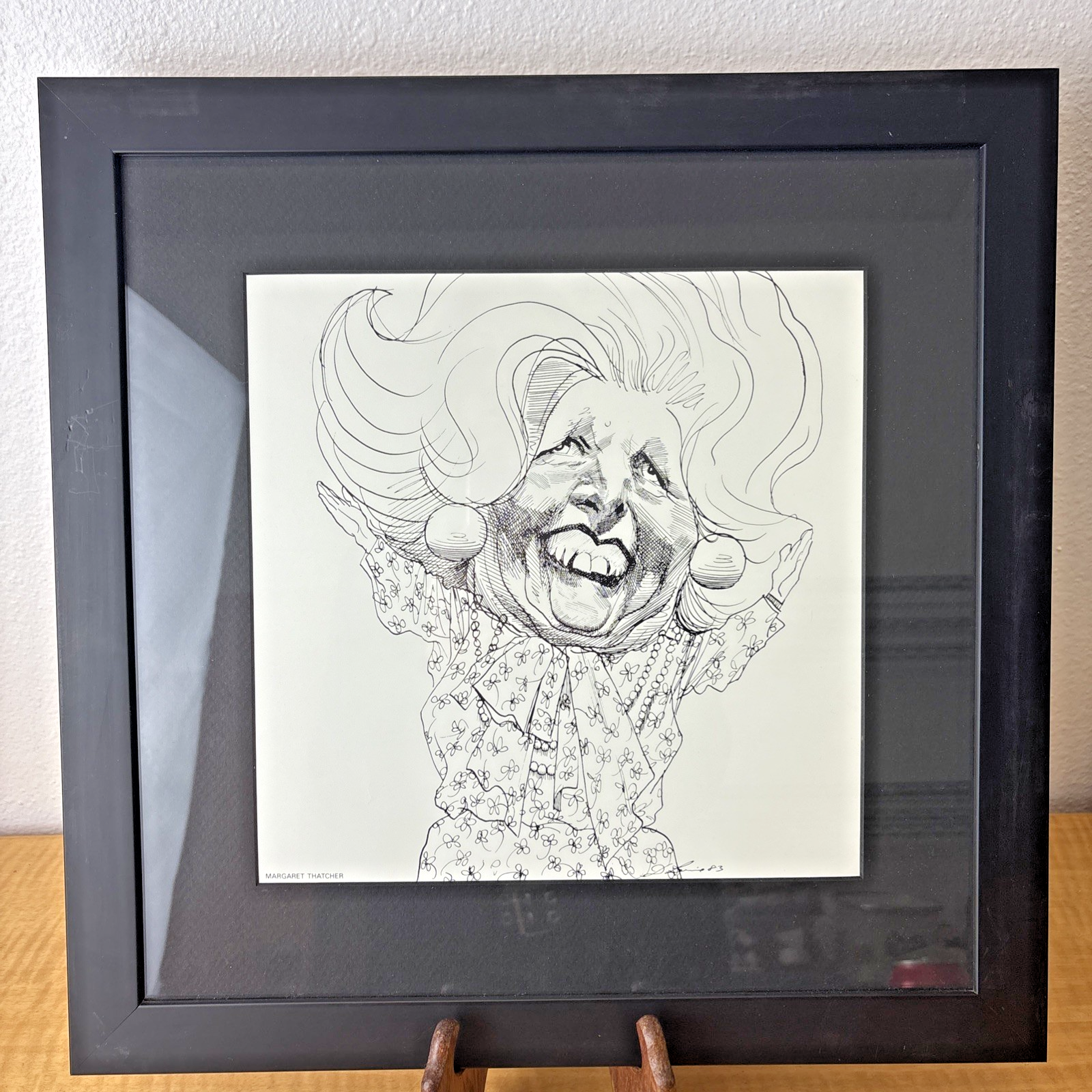 David Levine Framed & Matted Margaret Thatcher Illustration