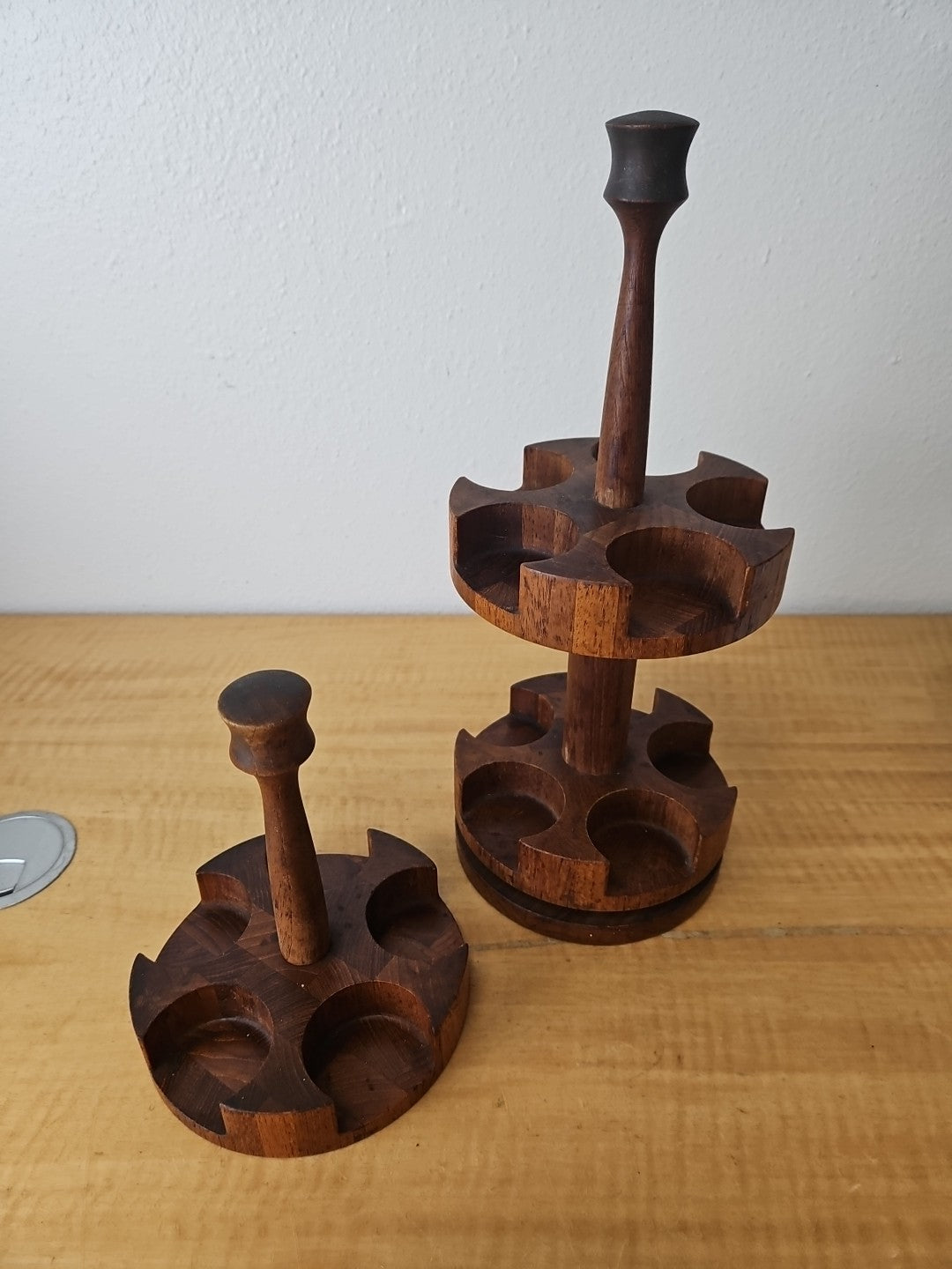 Digsmed Danish Modern Teak Wood SET 2-tier Revolving Spice Rack + 1 Tier Rack
