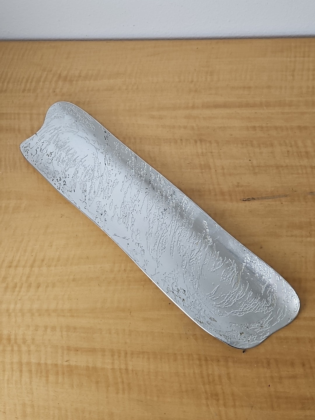 Don Sheil Signed Bread Tray Aluminum Curved etched 18 1/2″
