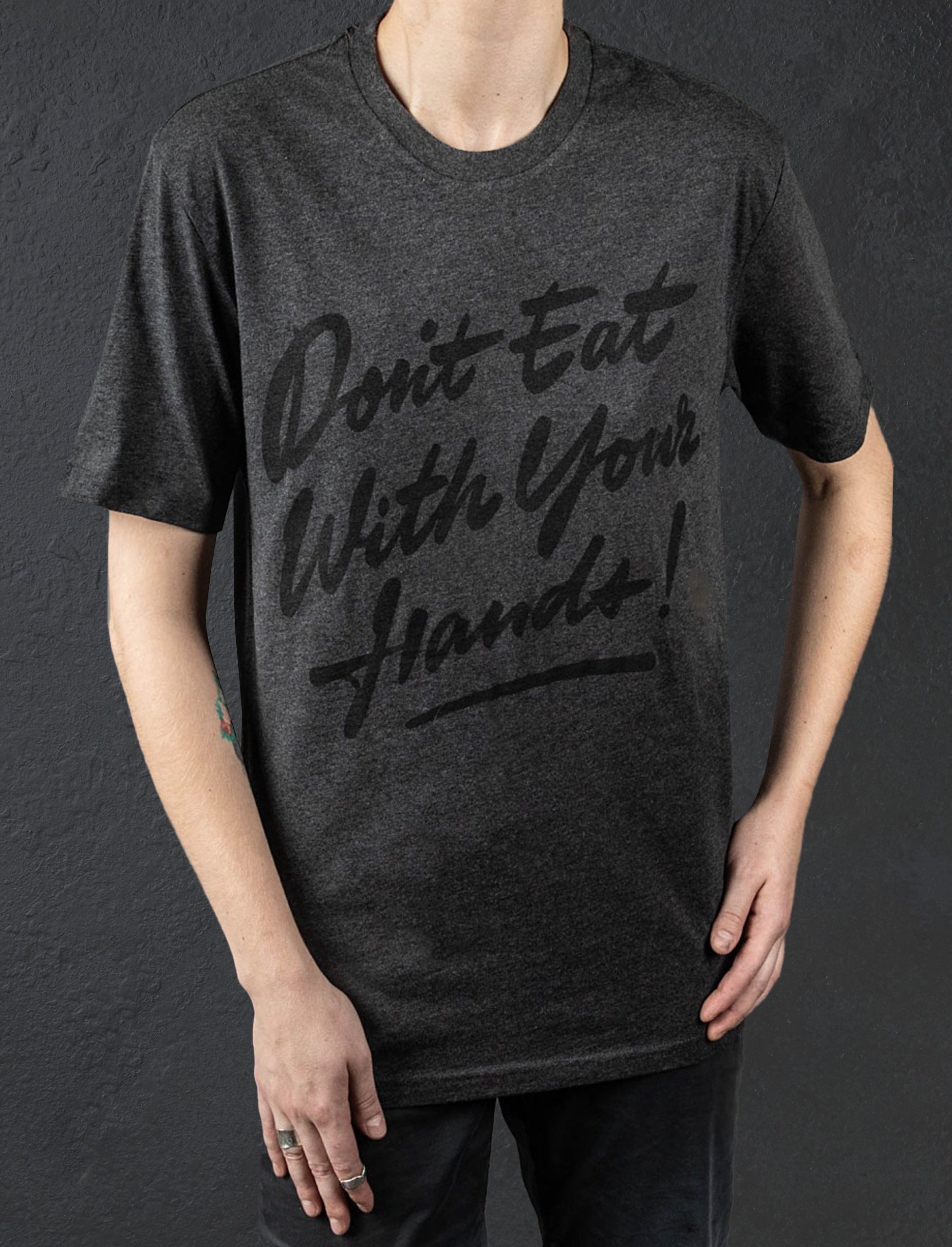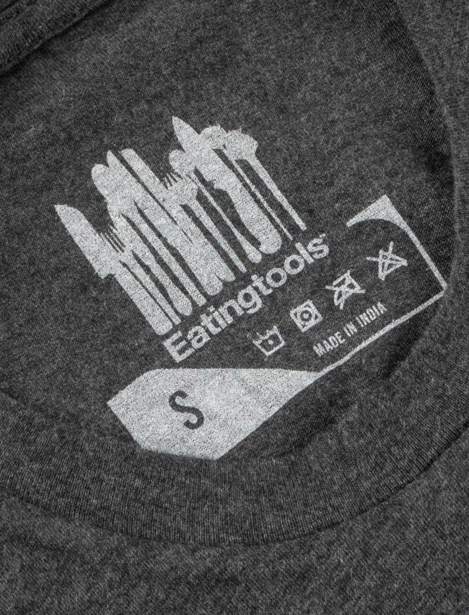 Wear your heart on your sleeve and share the love for our talented artists and their incredible culinary art with our newest t-shirt design in a classic black-on-gray aesthetic that looks great anywhere. The premium quality, 100% cotton, heather gray short sleeve t-shirt features our slogan Don’t Eat With Your Hands™ on the front and Eatingtools™ on one sleeve. Available in five sizes, all unisex, buy yourself or a loved one a timeless piece of Eatingtools apparel, here in time for our 10th year in business.