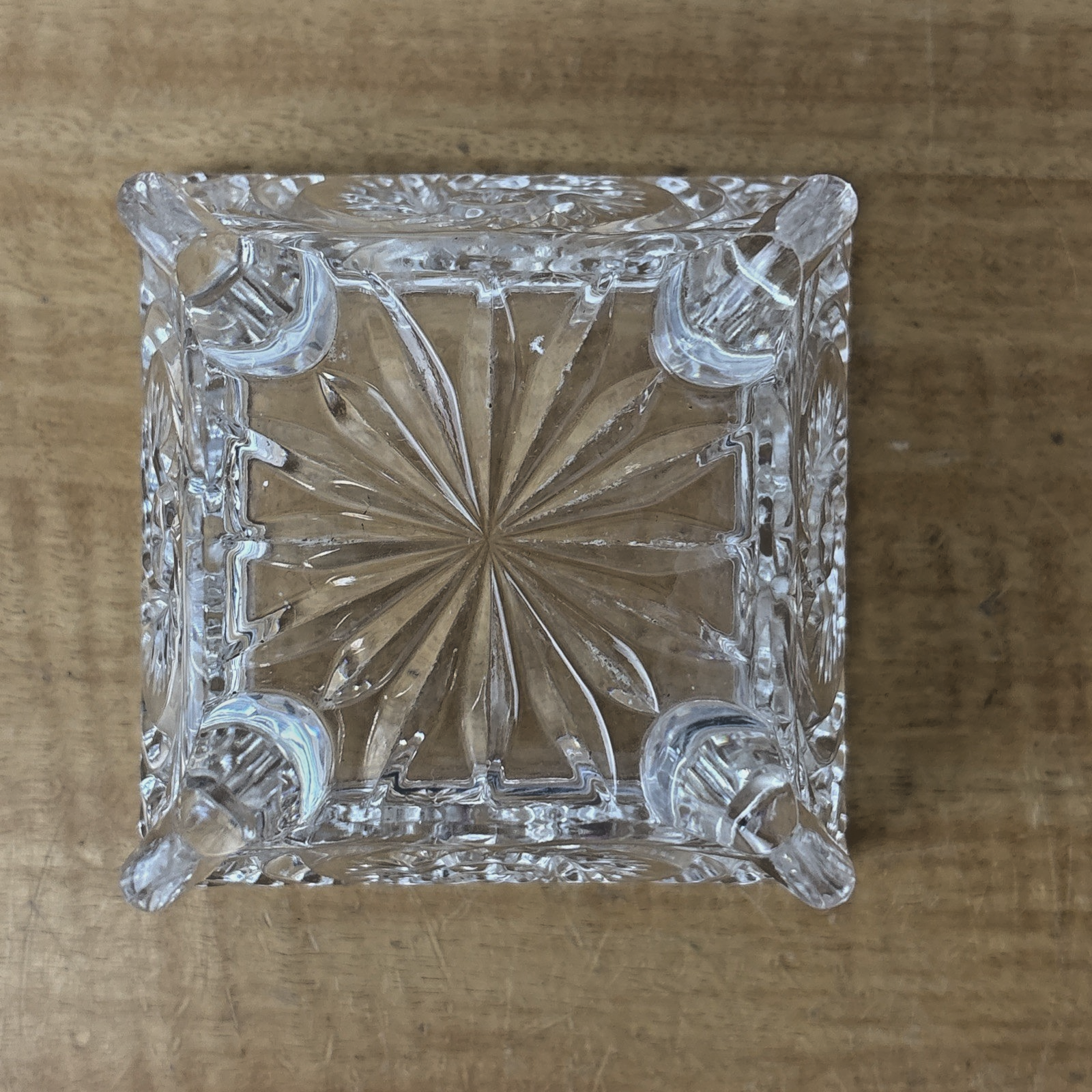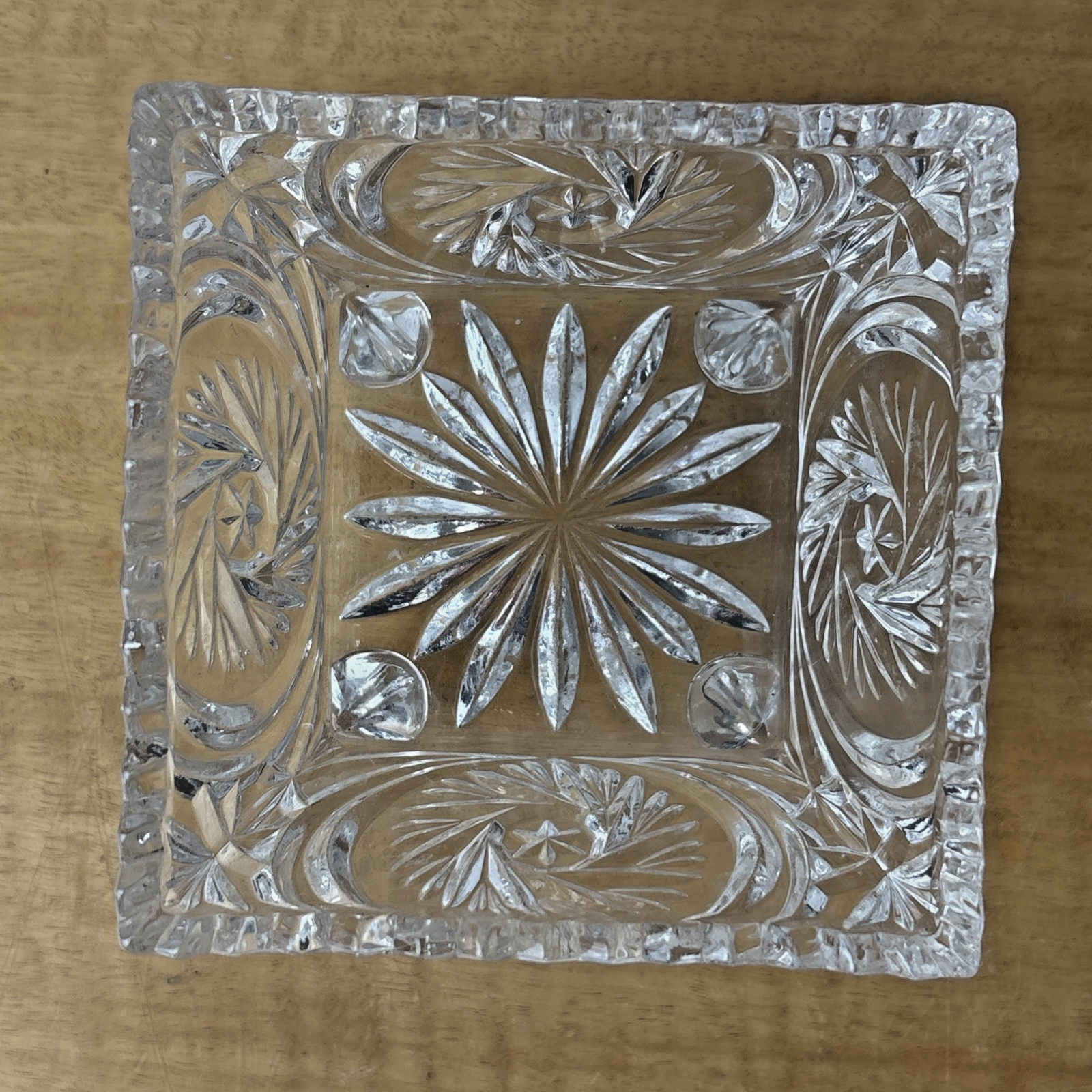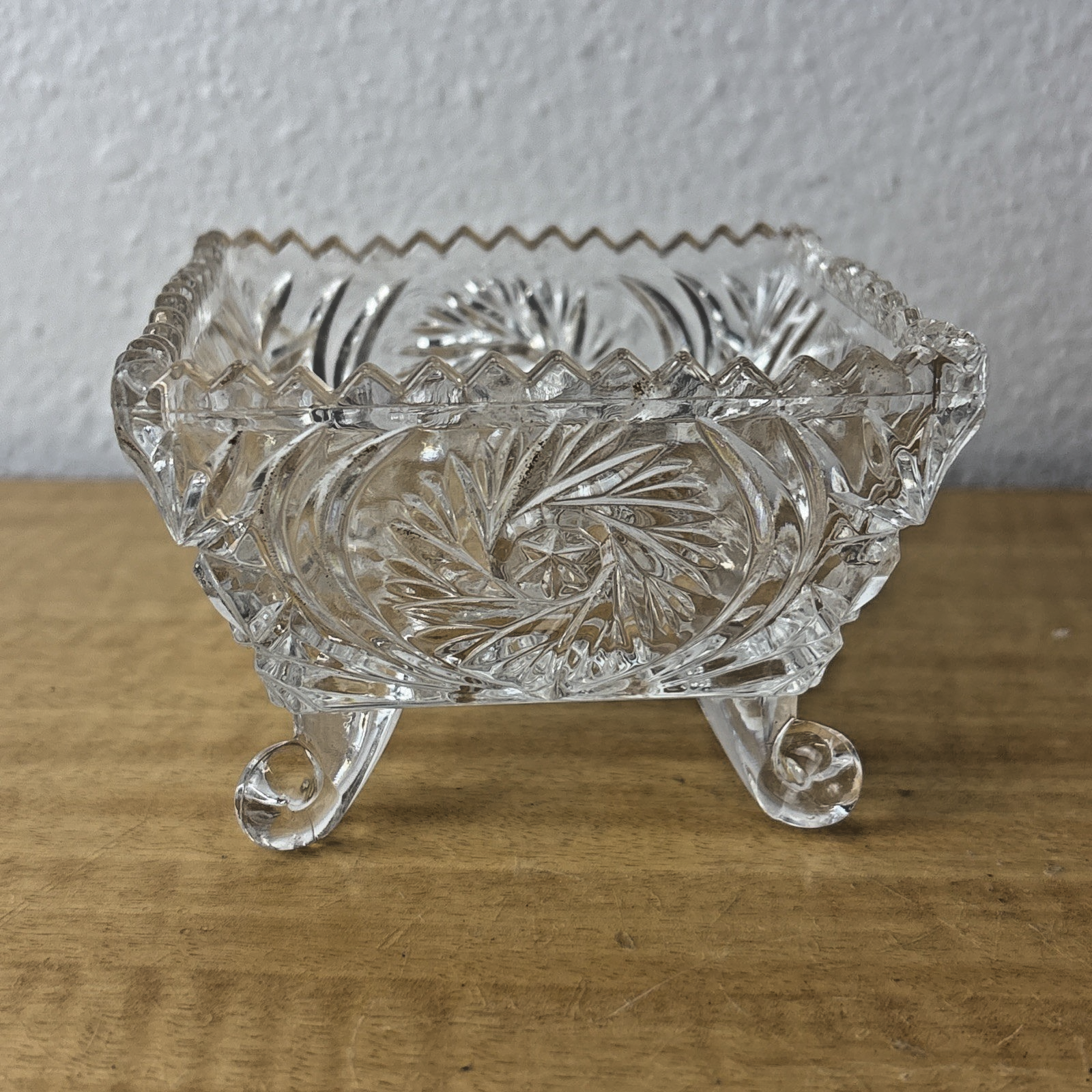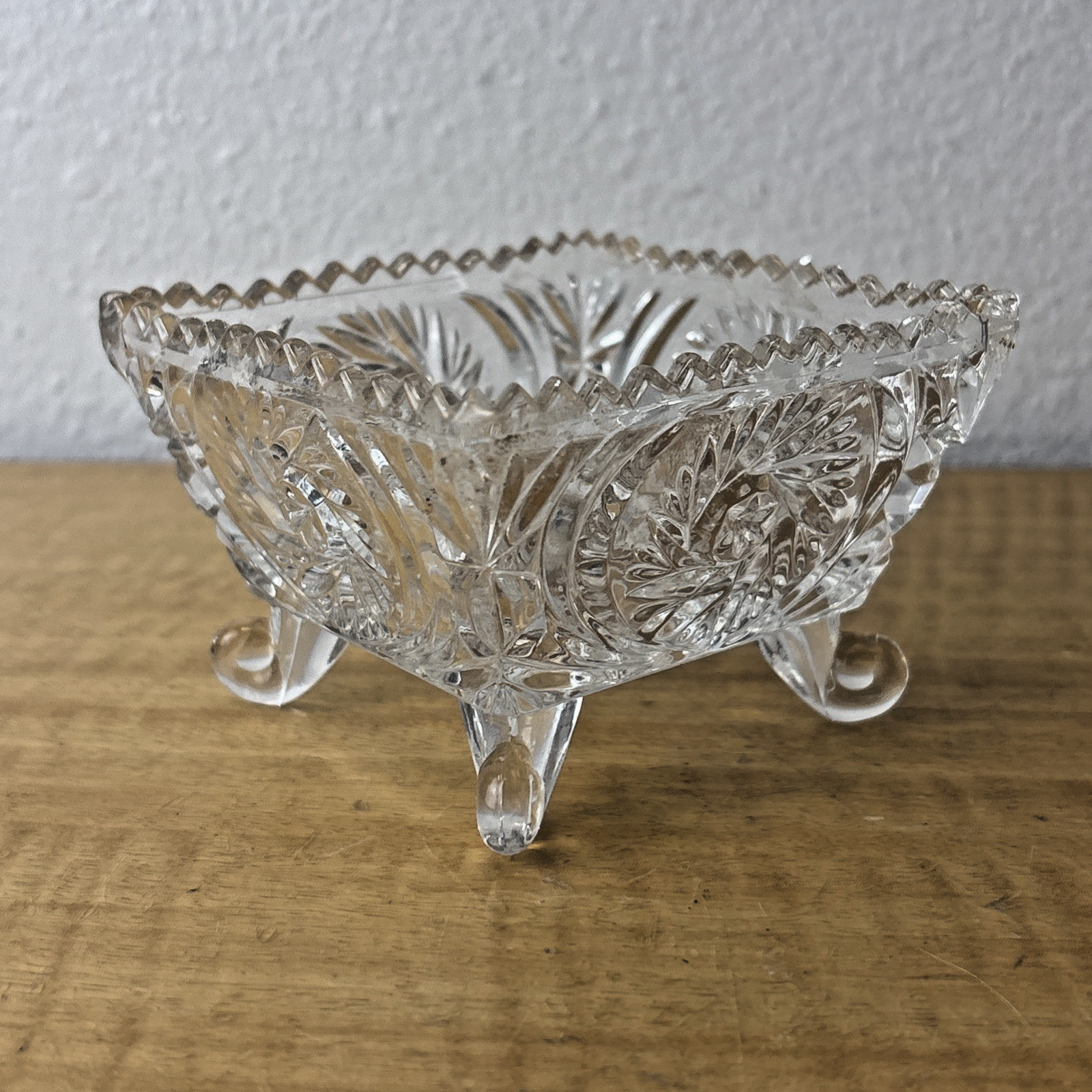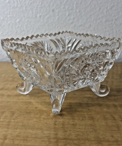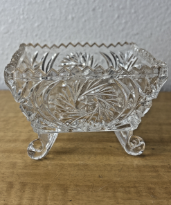 EAPG Pinwheel And Hobstar Square Footed Compote Candy Dish Clear Glass Pattern