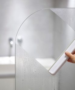 This compact shower squeegee with hook comes with its own storage holder that attaches securely to tiles or a glass shower screen and includes a handy hook for hanging a range of bathroom accessories.