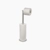 - Holds up to three spare toilet rolls, keeping them concealed.