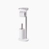 This smart wall-mounted toilet roll holder has several additional features including a handy storage shelf with an integrated small drawer beneath it that’s perfect for discretely storing sanitary items.