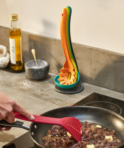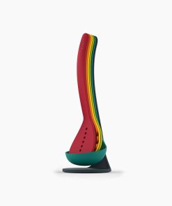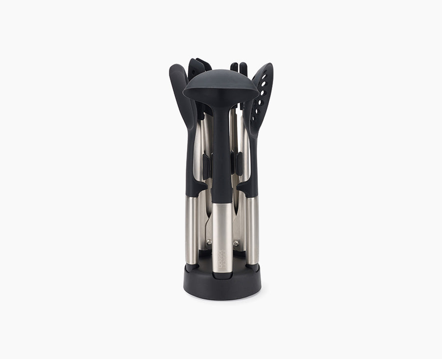 This 5-piece stainless-steel utensil set includes all the core kitchen utensils in a compact storage stand for easy access. It features Elevate™ technology with integrated rests to keep the head off countertops, improving hygiene and reducing mess.