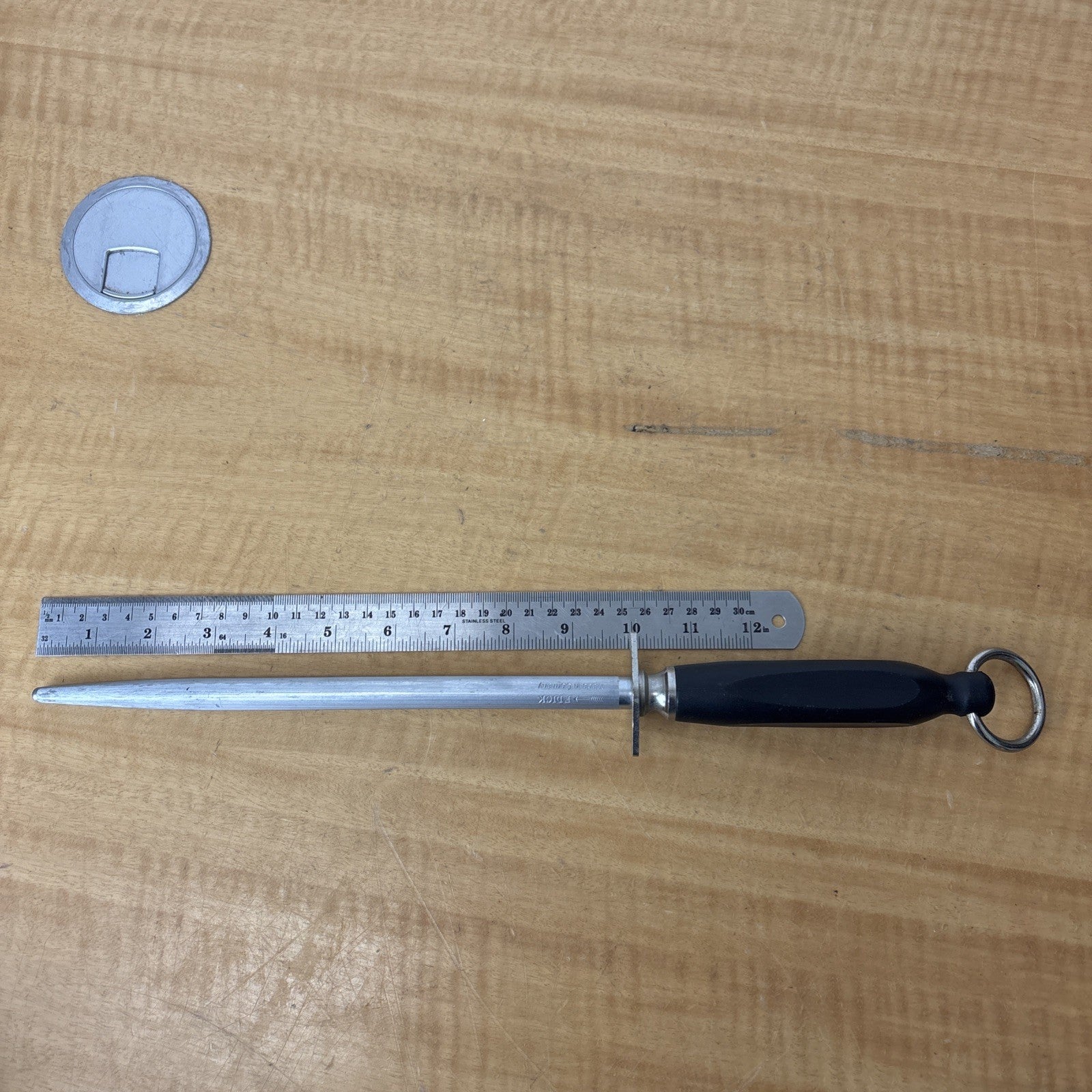 F DICK – Germany SHARPENING STEEL – Round – 10 inch Blade Hang Ring