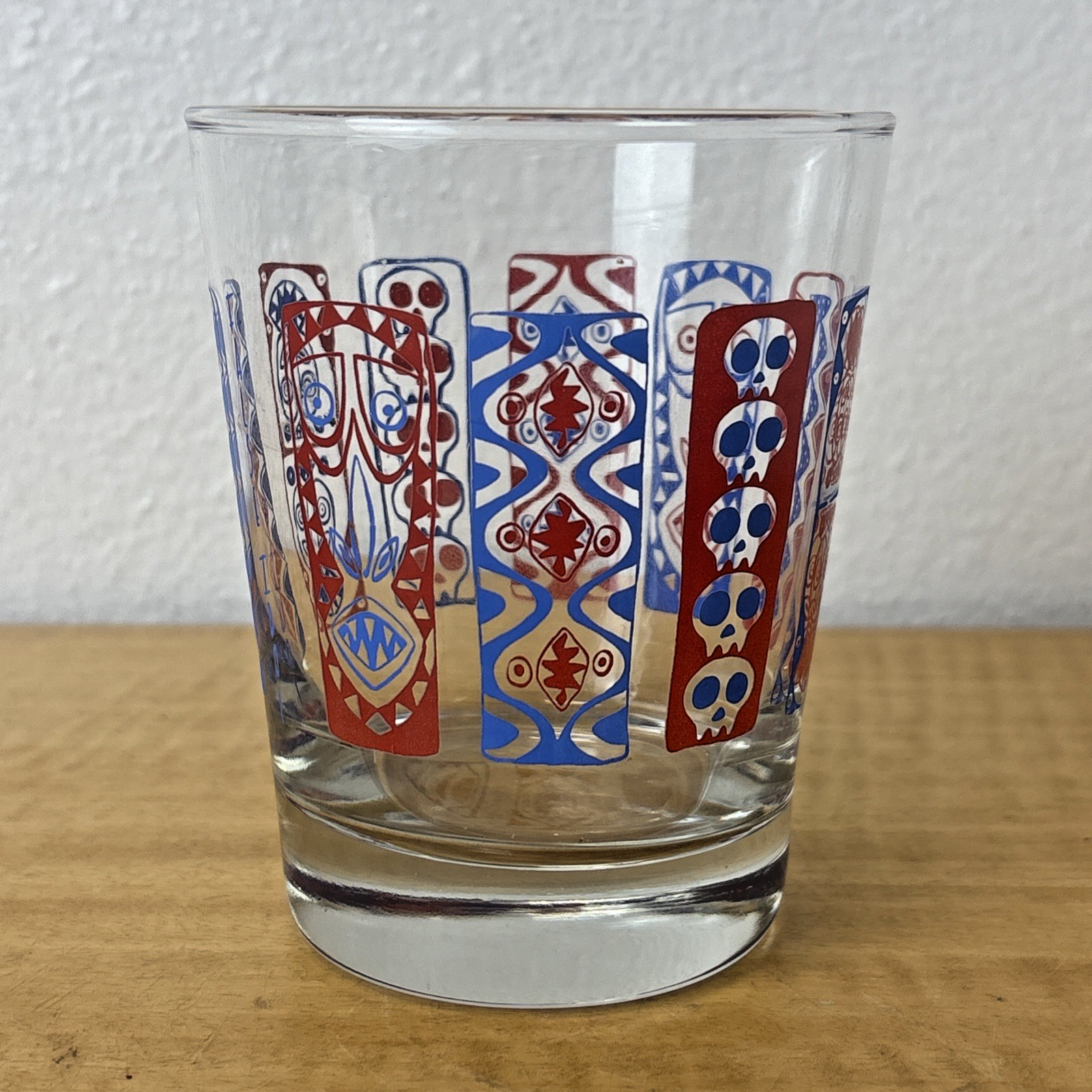 False Idol Mai Tai Glass Bosko Tiki Barware Red & Blue Skulls San Diego , CA