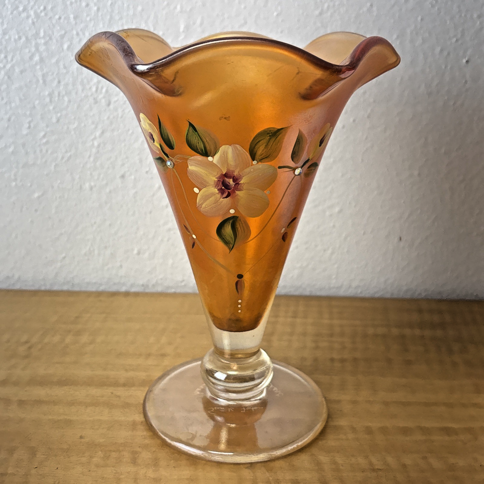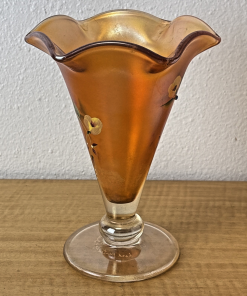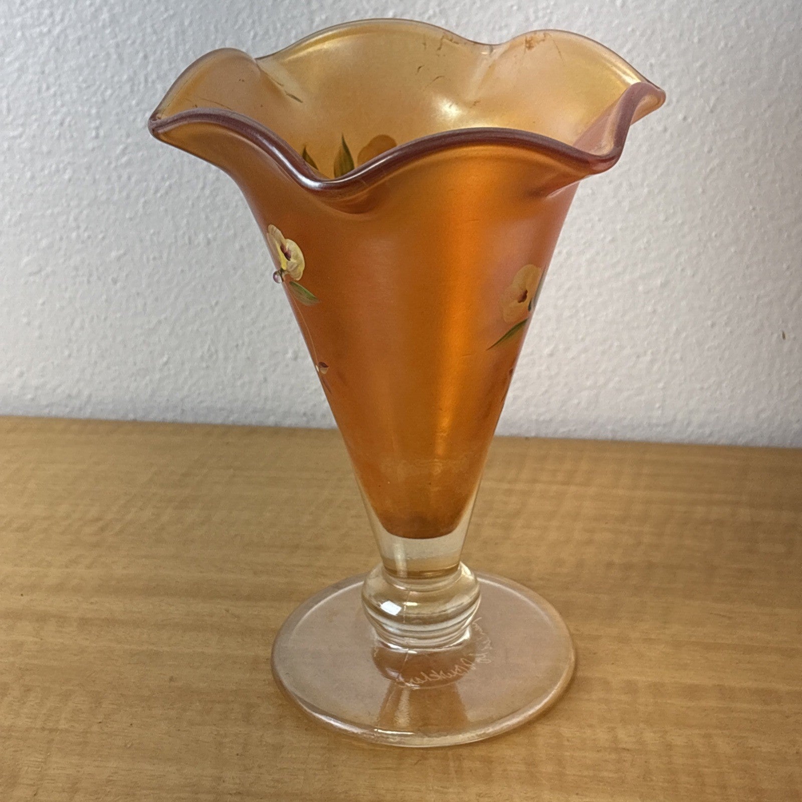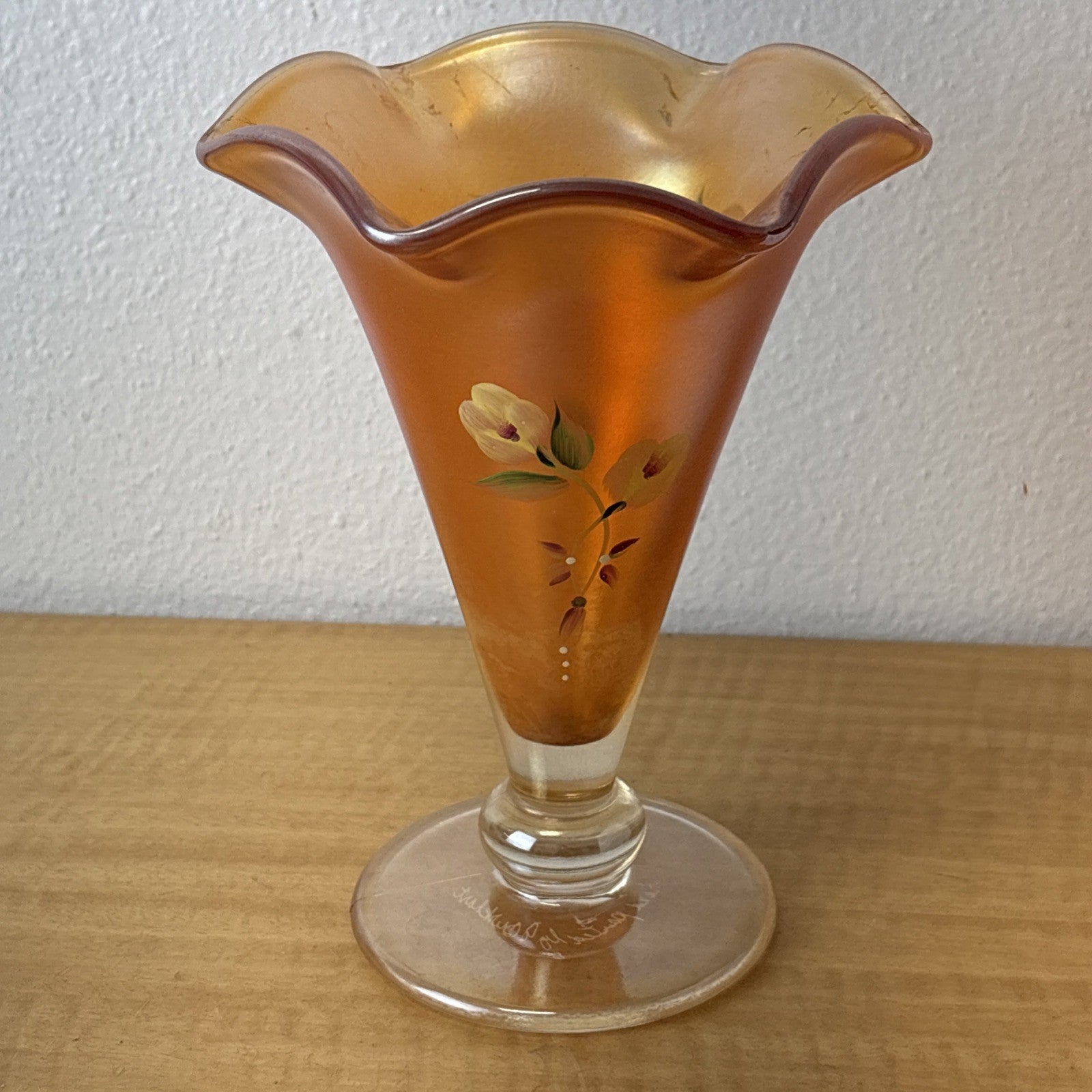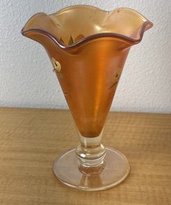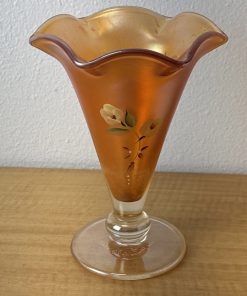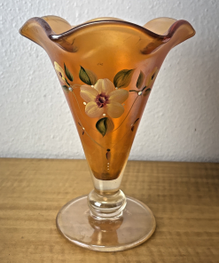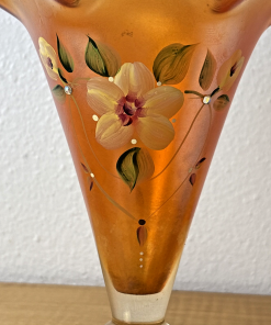 FENTON Glass Vase, hand painted, signed by J Burkhart Orange w/ Floral Design