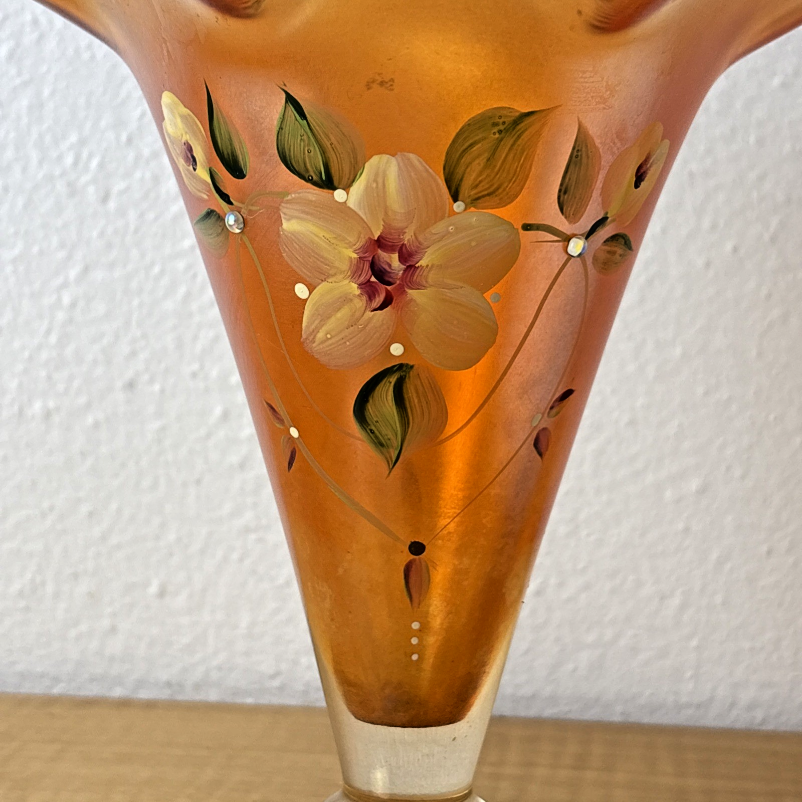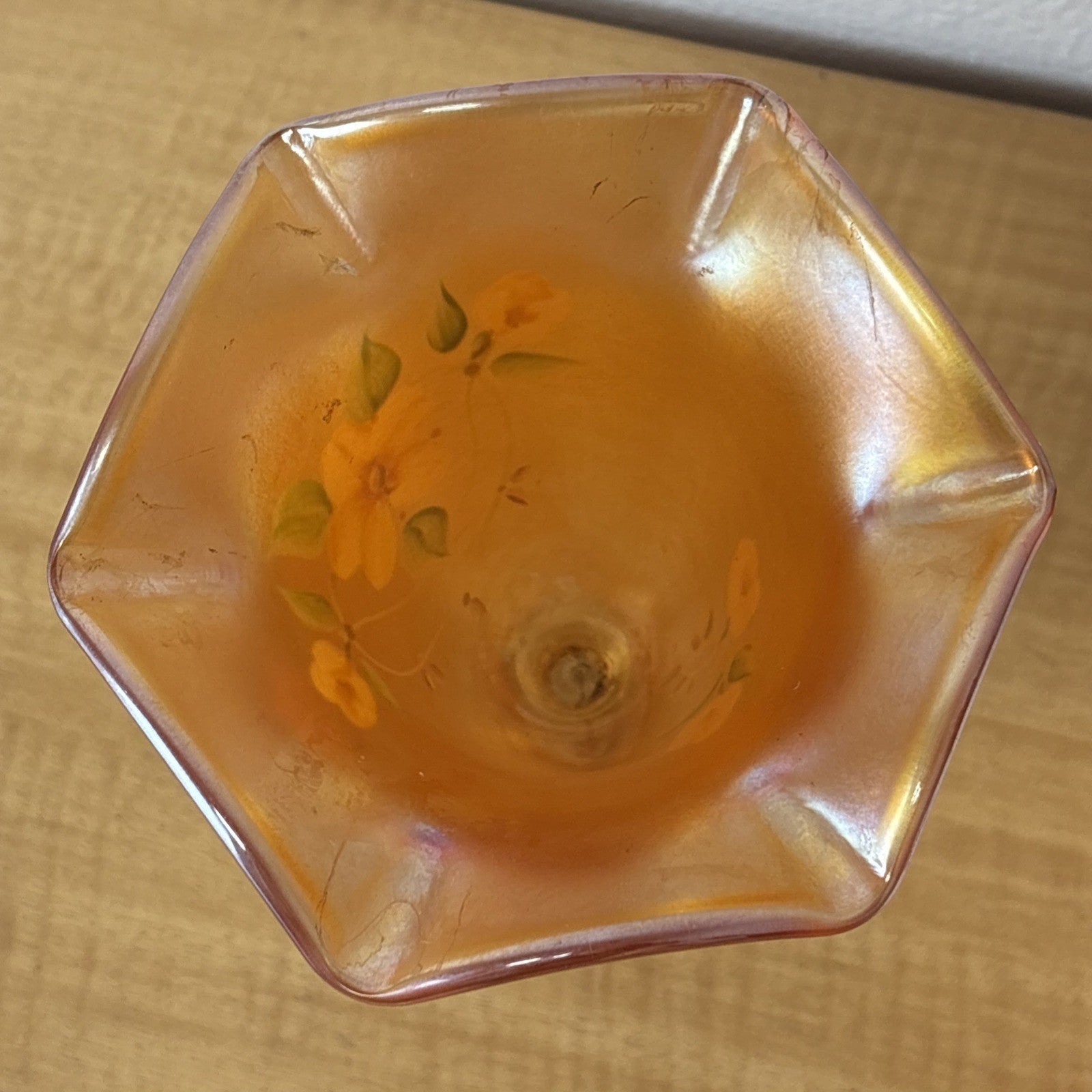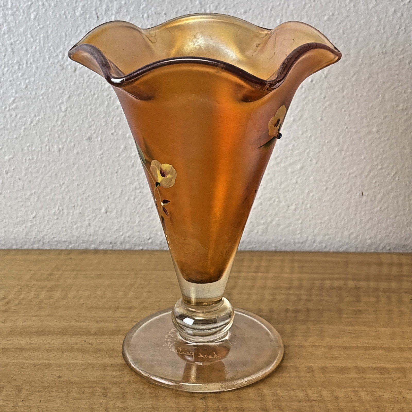 FENTON Glass Vase, hand painted, signed by J Burkhart Orange w/ Floral Design
