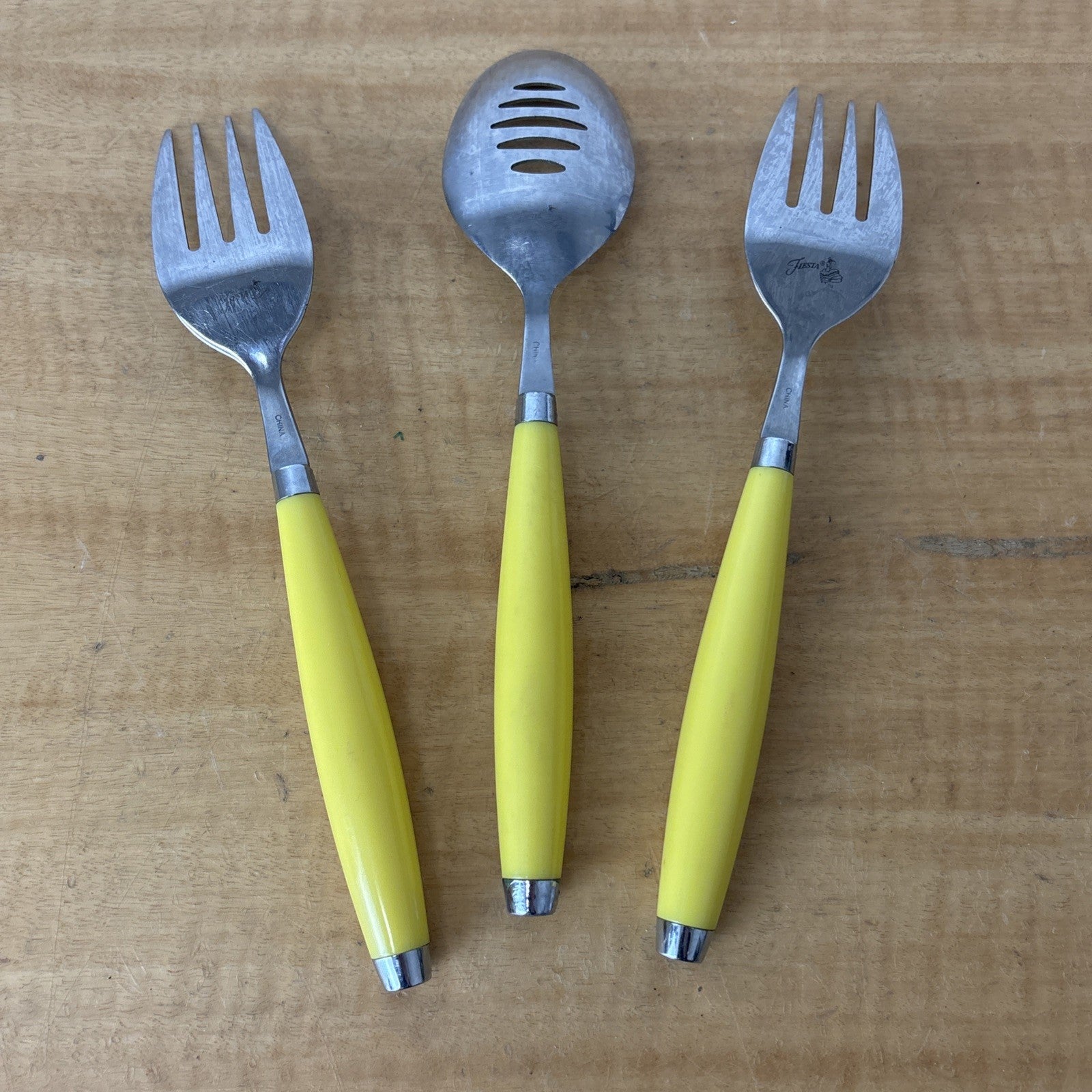 Fiesta Yellow Serving Utensil Set of 3, Two Meat Forks and One Slotted Spoon