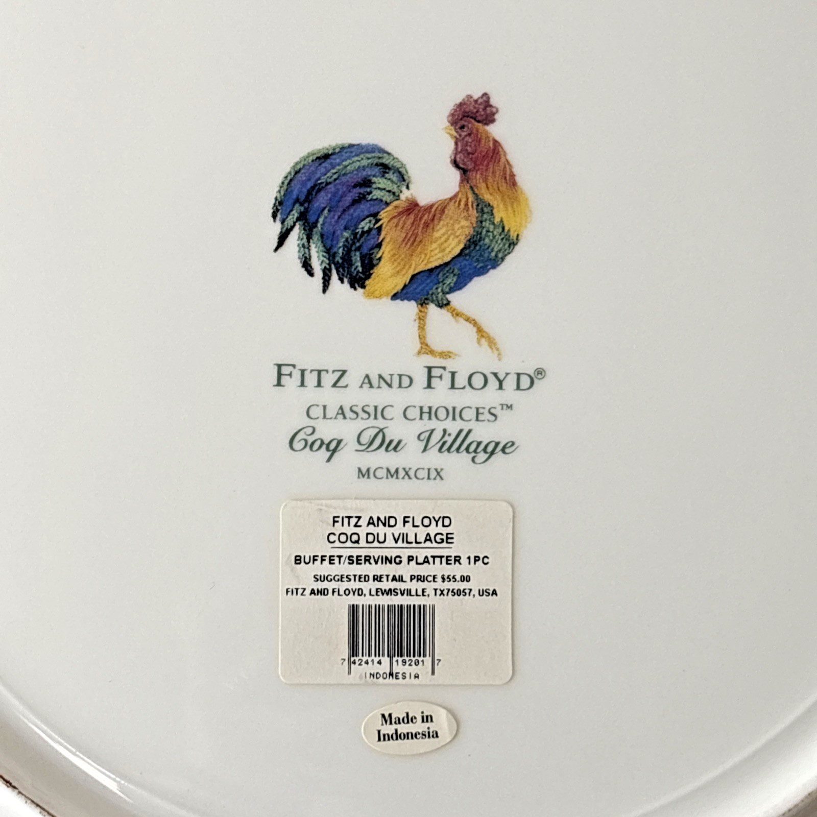 FITZ & FLOYD COQ DU VILLAGE 12″ BUFFET SERVING PLATTER / DISH