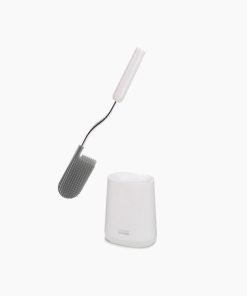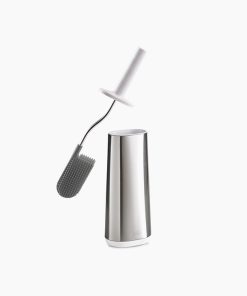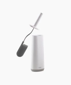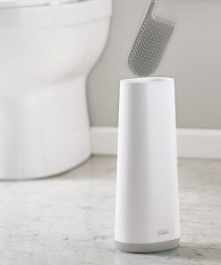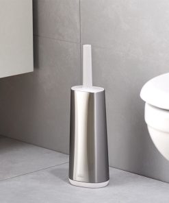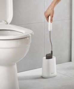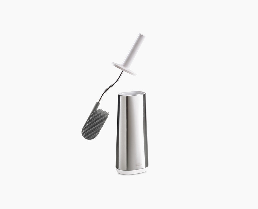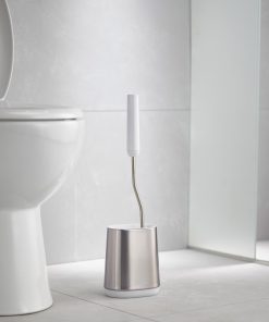 This toilet brush features a D-shaped, flexible head that makes it easier to reach all areas and comes with a slimline stainless-steel holder with a fingerprint-proof coating.