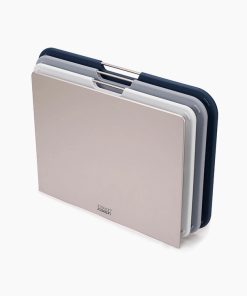 Having multiple boards on hand is convenient, but storage can be a challenge. That’s why we designed Folio™. This four chopping boards and knife set is housed in a case, keeping your worktop neatly organised. Each board features a knife-friendly, textured surface on both sides and is colour-coded to help prevent cross-contamination.