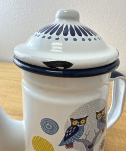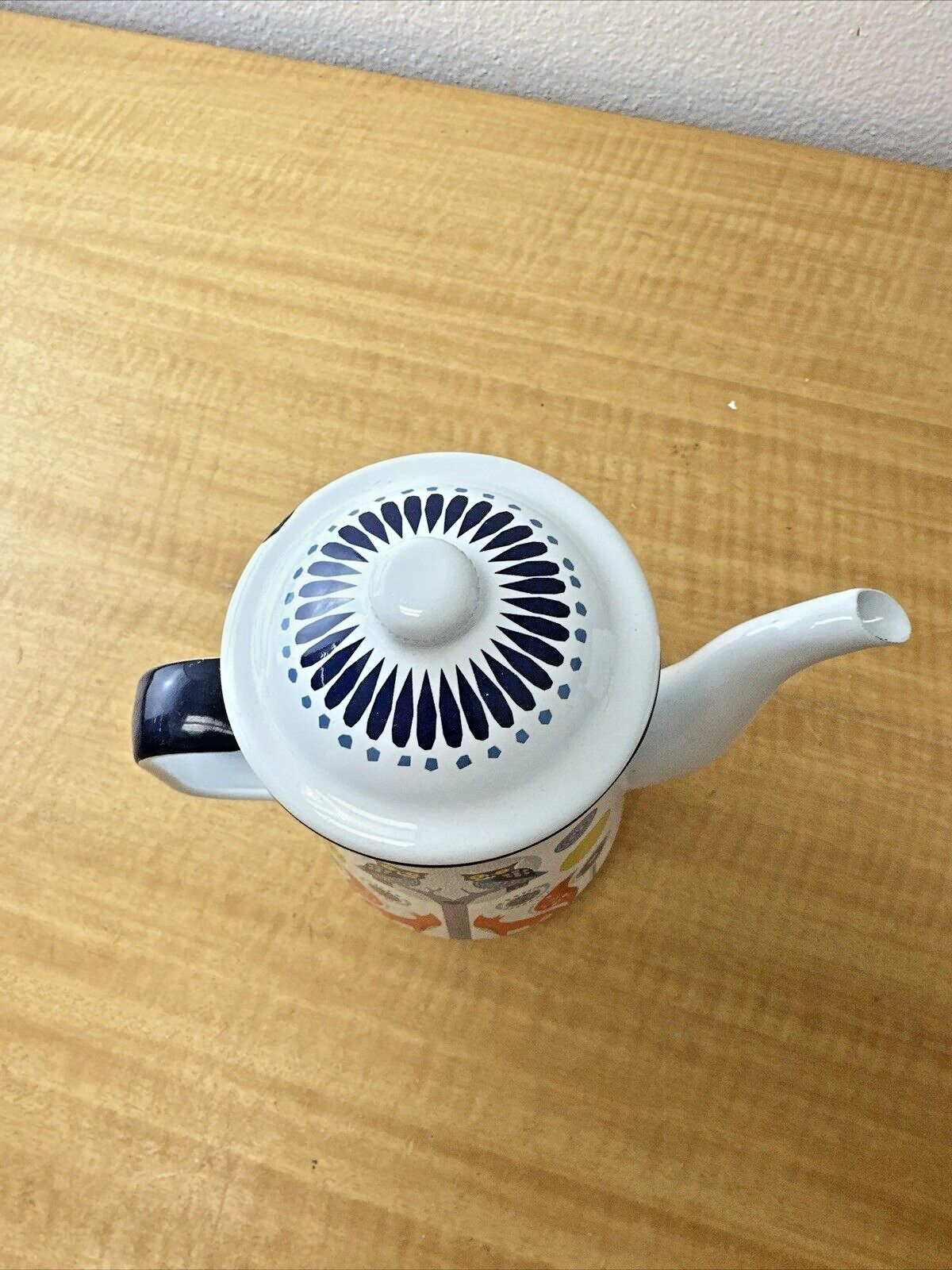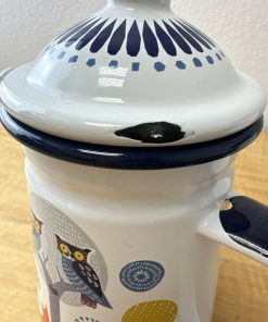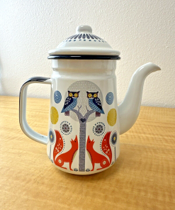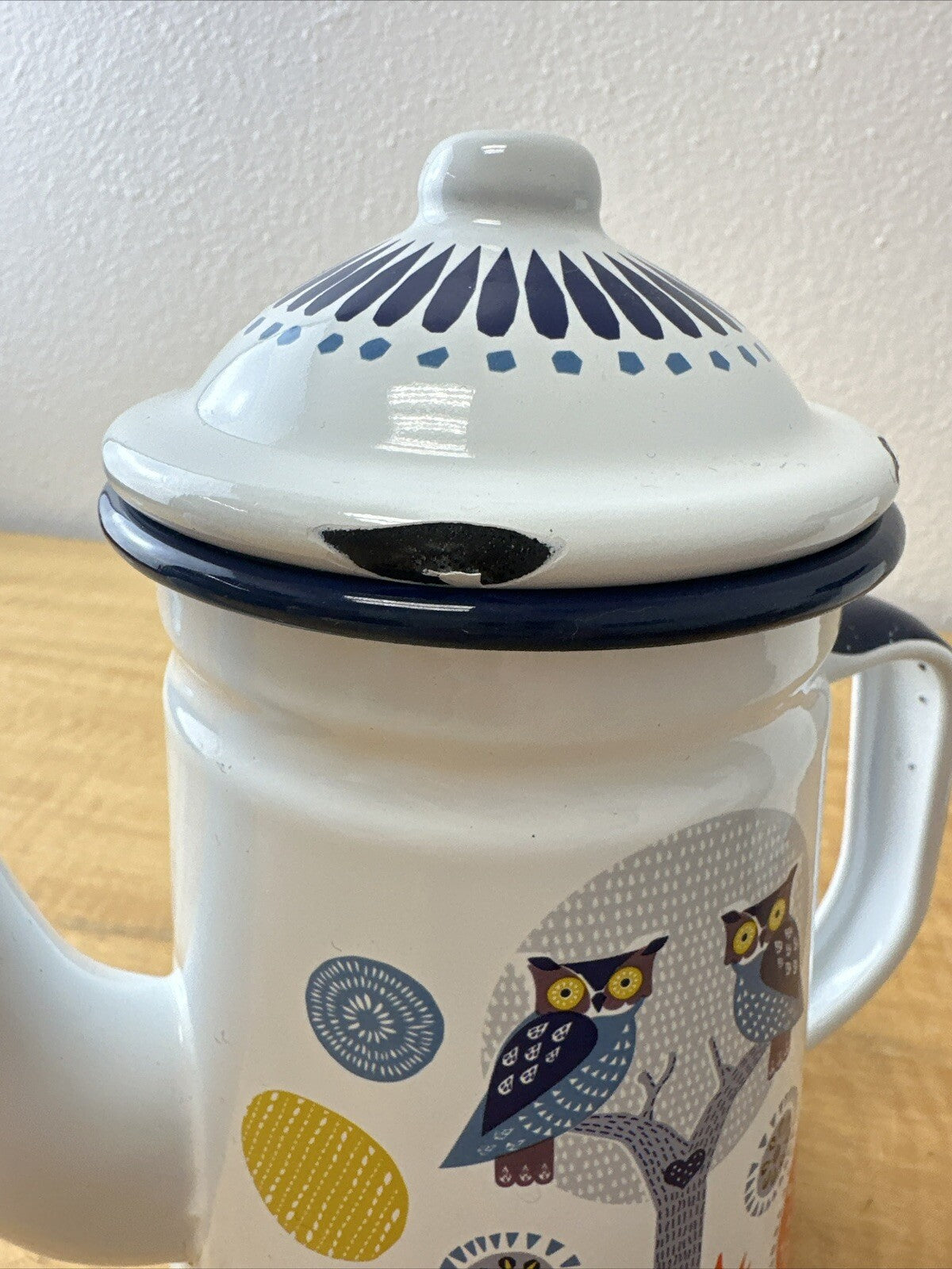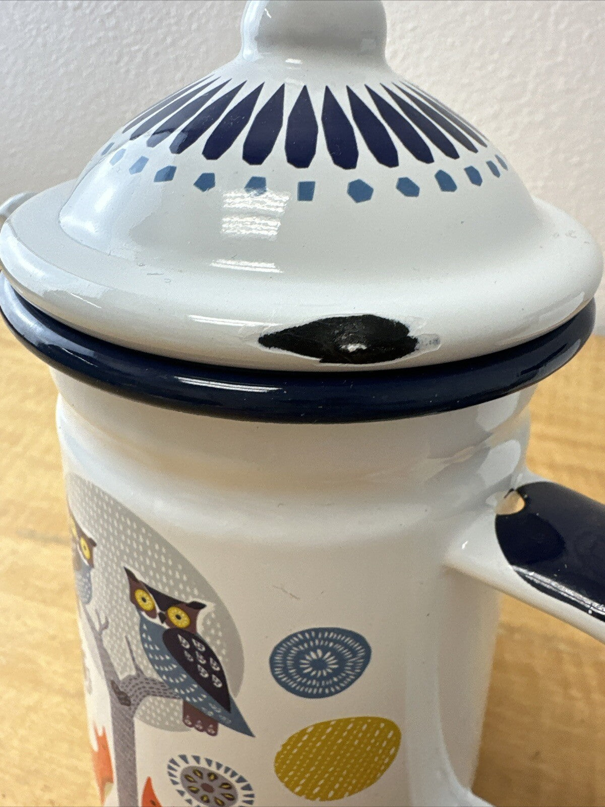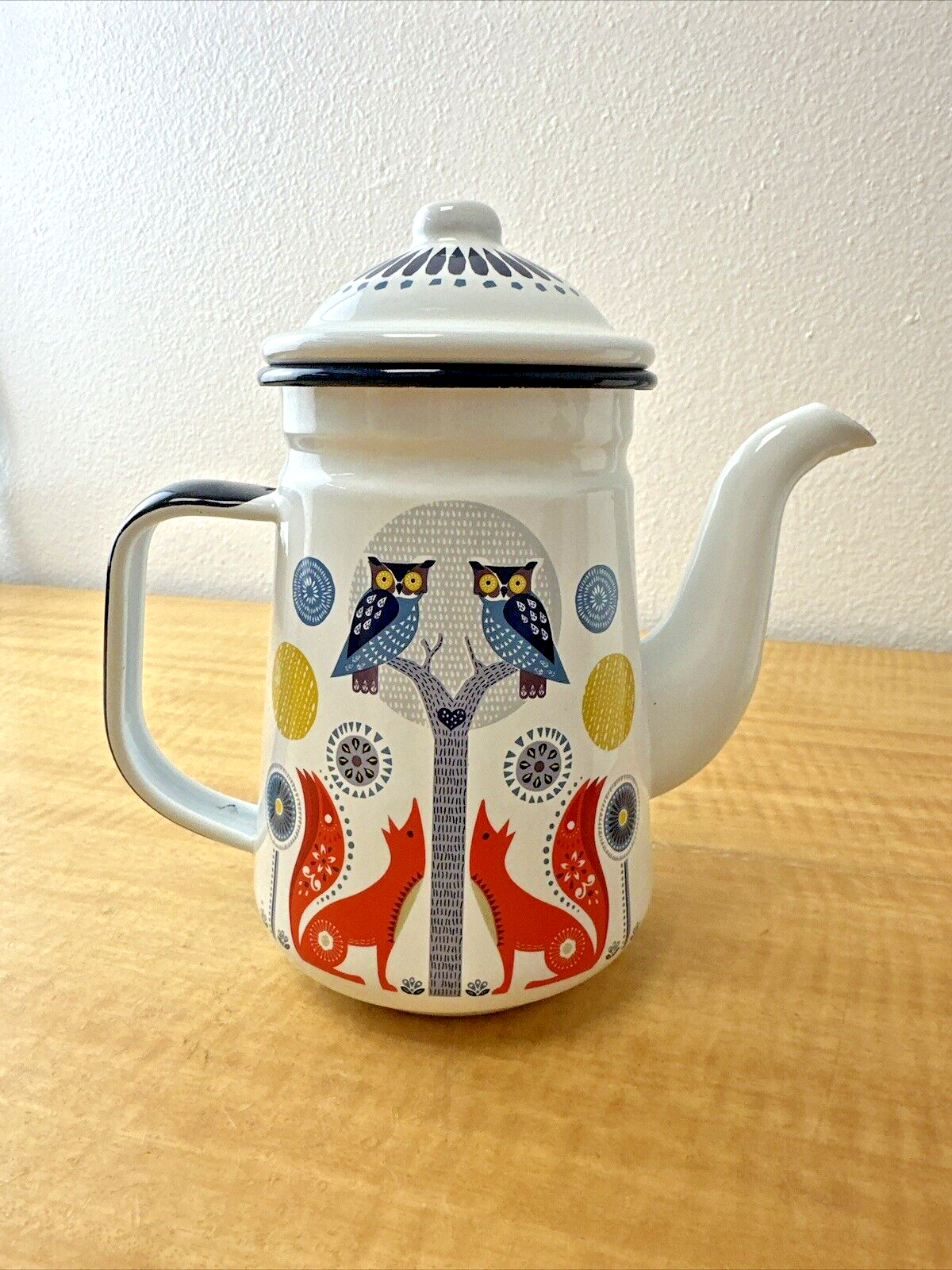 Folklore NINA JAREMA Whit Enamel Metal Coffee/Teapot Wild Wolf Nght Ukraine Owl