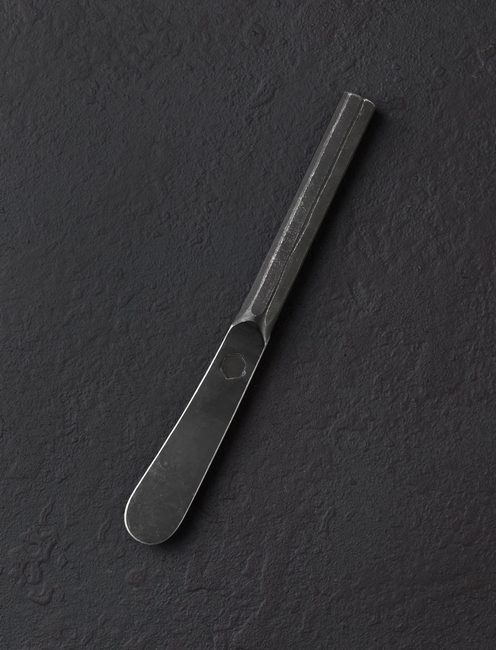 This forged butter knife is crafted by hand in Somerset, UK by Alex Pole Ironworks. The simple, yet unique forged look of Alex Pole products makes it a pleasure to hold and work with – a stainless steel butter knife that will happily spread your butter on bread, fig spread on a cracker, and joy on the day.