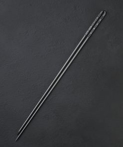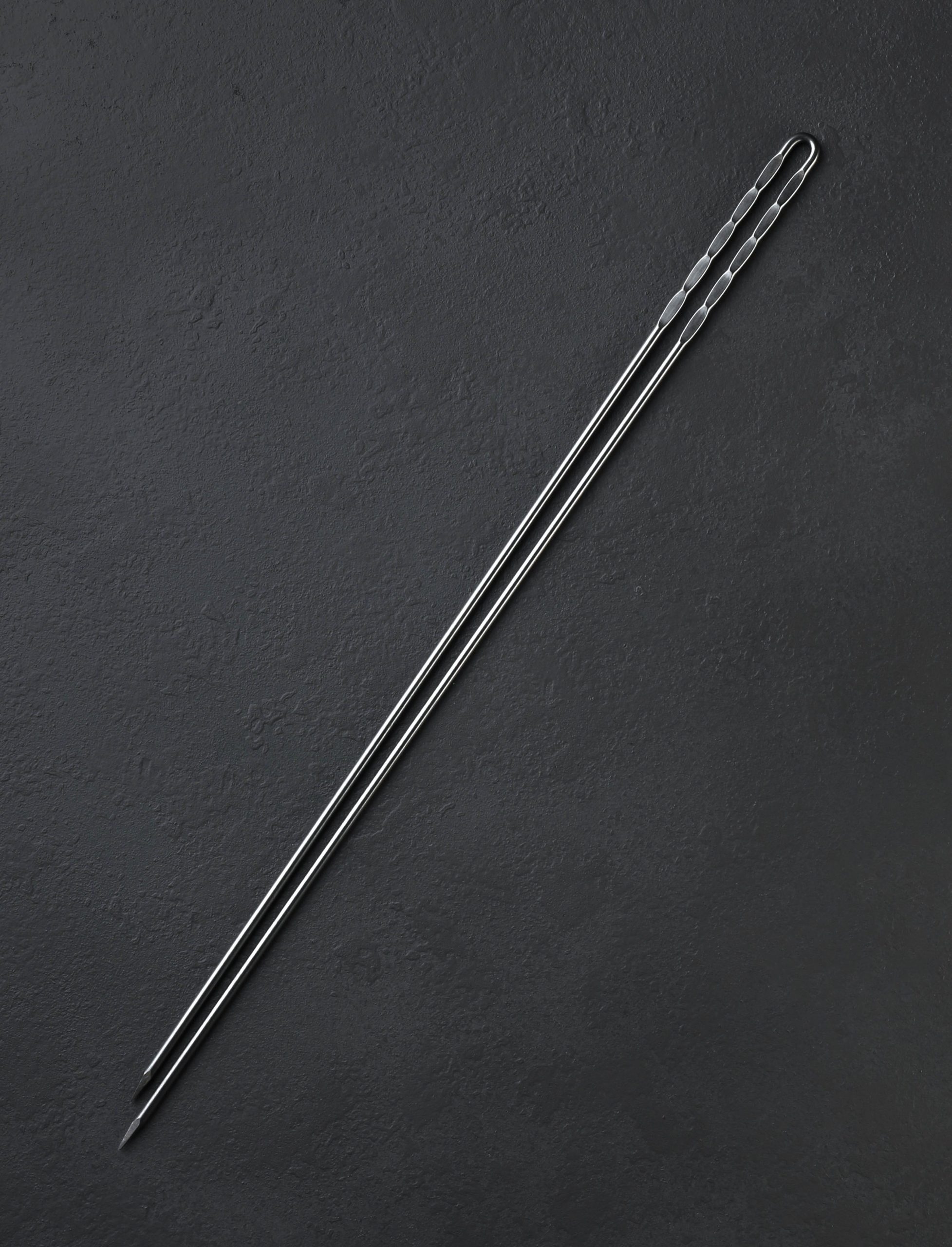 Skewer and grill it all with Alex Pole Ironwork’s appx. 22.5″ forged stainless steel double skewers. For large cuts, kebabs, and more, these substantial tools are perfect for cooking over the fire. One side slightly longer than the other, they are easy to load, and easy to hold.