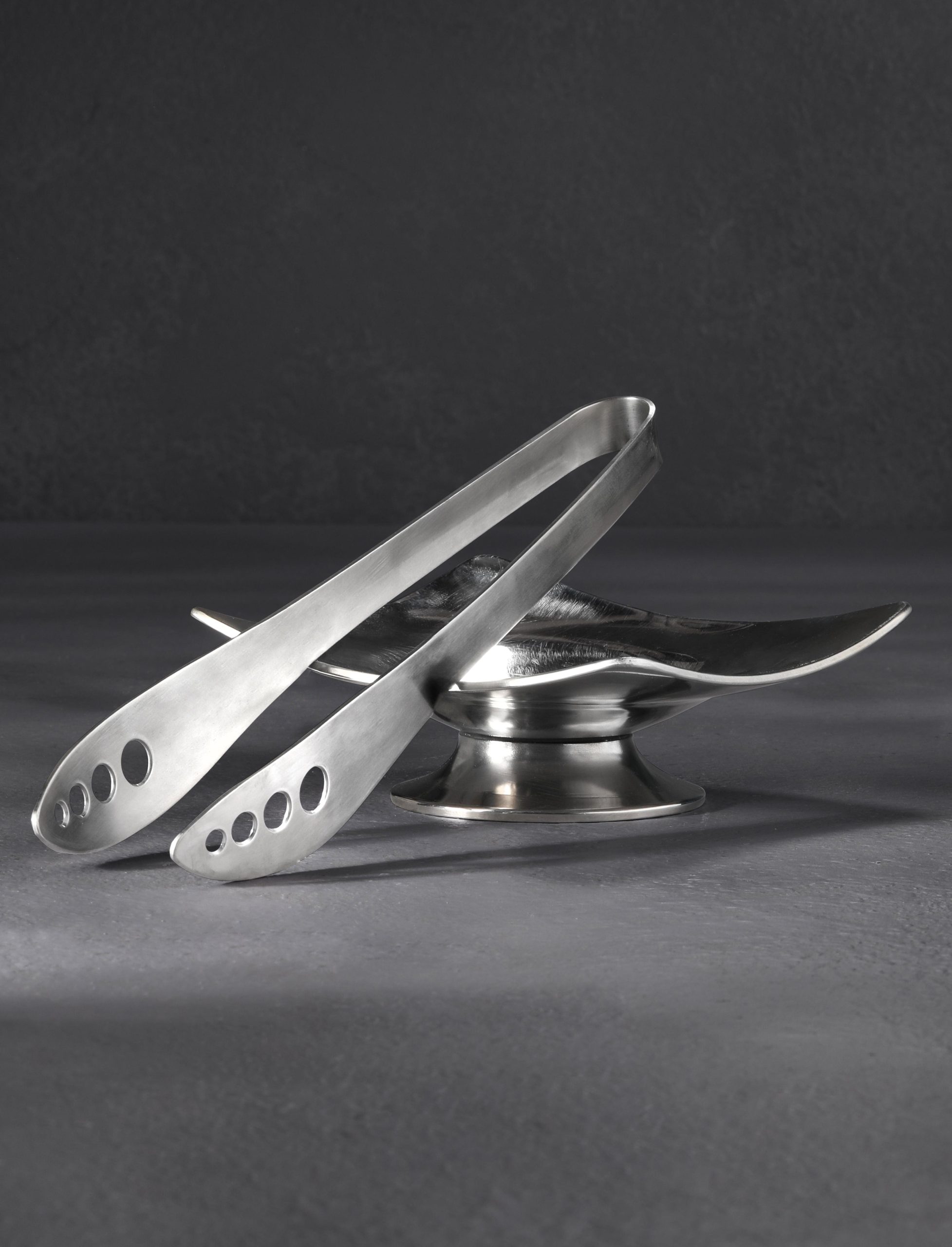 A memorable culinary experience for you and your guests alike, utensils as unique and eye-catching as the food itself. Handmade in polished, stainless steel in Northern California by artist and sculptor Stephen Fitz-Gerald, this two-piece gift set is sure to enjoy frequent use when entertaining friends and family. Stephen’s serving tongs are satisfying in the hand and can be used to mix and serve salad in the dining room or to assist while you create holiday food arrangements in the kitchen, among unlimited potential uses around the home. The rhombus bowl is perfect for finger foods from nuts to fruits or even dips and sauces, crafted by hand one at a time from thick, polished steel.