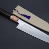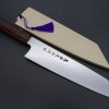This is the special order made Fu-Rin-Ka-Zan Limited Model, and available with limited quantity. Perfectly mirror polished VG-10 Kiritsuke blade comes with octagon shaped magnolia wooden handle and hand crafted magnolia wooden saya.