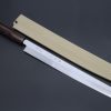 This knife comes with a comfortable octagonal Ebonywood handle with black water buffalo horn ferrule / bolster, and includes a matching magnolia wood Saya (“Sheath”) -with black pakkawood saya pin- for safekeeping.