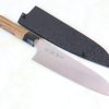 This knife has a unique natural wooden texture of octagonal Bocote wood handle, which has a buffalo horn ferrule.(Sukenari carefully selects the Japan’s Premium Wa Handle craftsman for handcrafting this premium wood Wa Handle). For safekeeping, this knife comes with a matching Black Lacquered Wood Saya (Sheath) with a black pakkawood Saya pin.