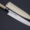The Gyuto is the Japanese version of the classic Western Chef’s knife. It can be used with a variety of different cutting techniques to achieve a wide range of kitchen tasks and is suitable for cutting the vast majority of meats, fish, vegetables and fruits. The Gyuto is true multi-purpose knife.