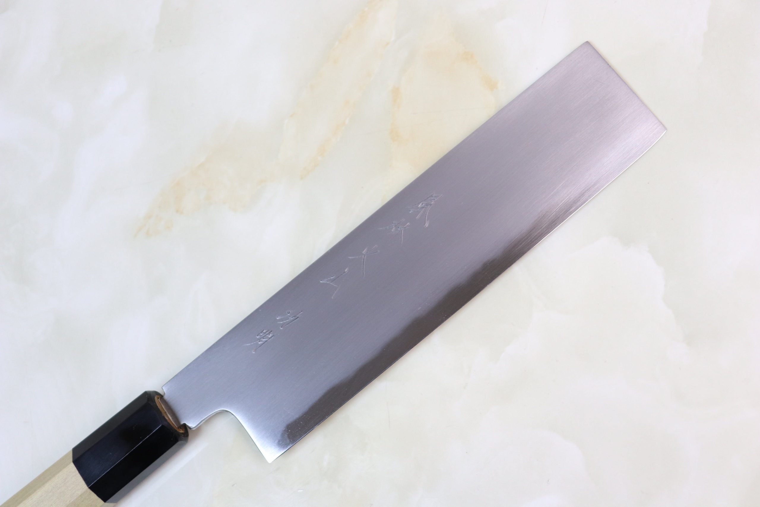 - After using, please hand wash the blade, bolster and handle thoroughly, and wipe it clean and dry with soft clothes. Please apply Tsubaki oil on the blade and keep it in dry place.