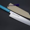 This Simple and Functional Kiritsuke is forged and hand crafted by passionate forge smith Sukenari using R-2 steel. R-2 (Also known as SG-II ) is a high-quality Powdered Metallurgy (P.M.) High Speed Tool Steel from Kobelco. R-2 has a very rich chemical composition, which includes Carbon 1.25-1.45 %, Chromium 14- 16%, Molybdenum 2.3- 3.3 %, and Vanadium 1.8- 2.2 %.