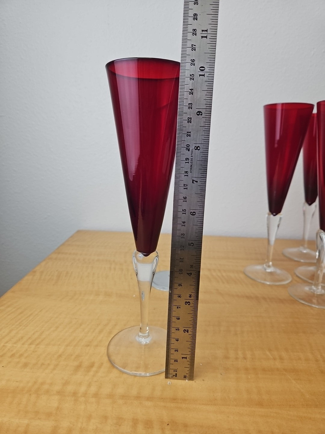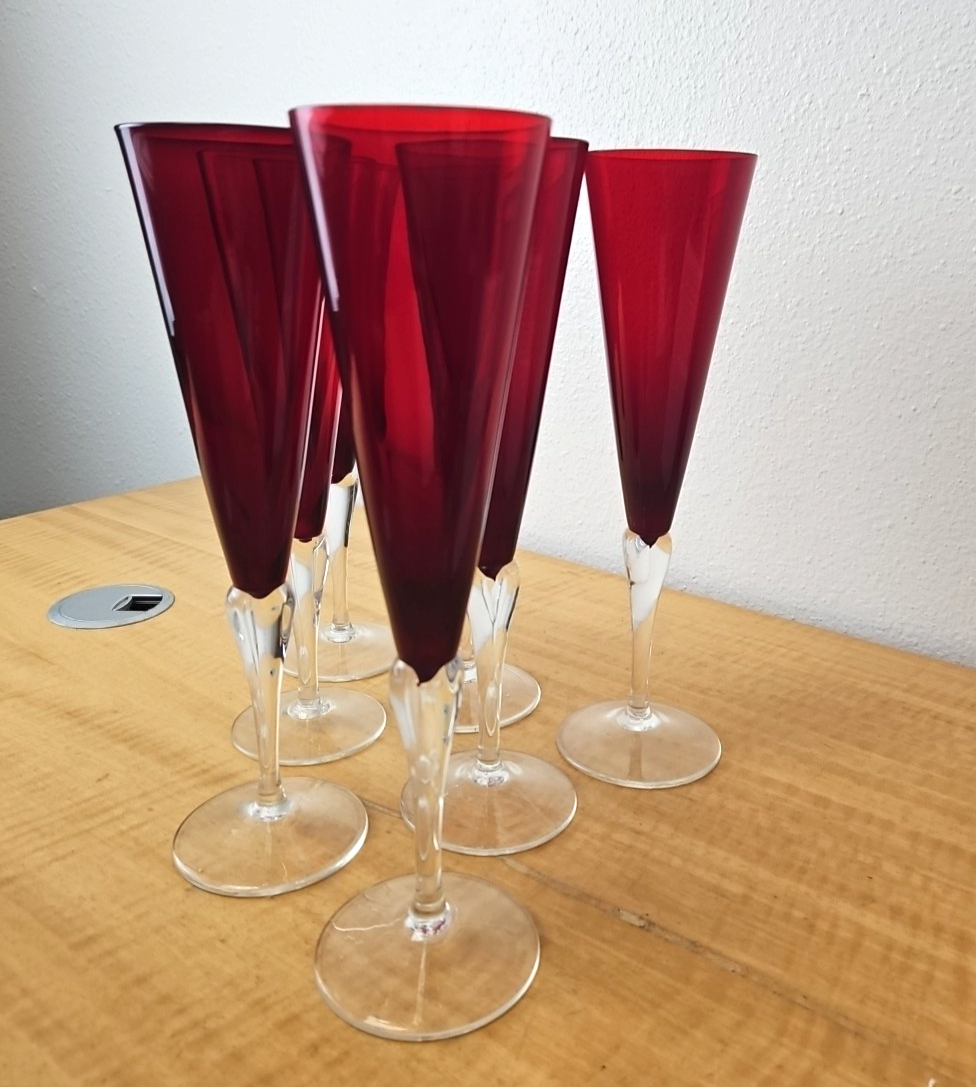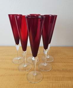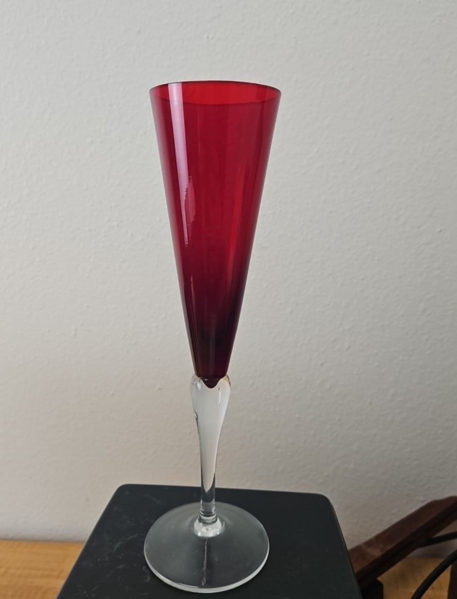 Garnet Red Champagne Glasses Crate & Barrel Czech 10 1/4″- (7 avail)