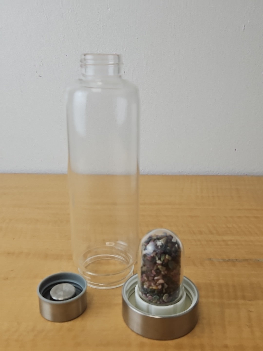 Gemstone Glass Water Bottle- crystals, reusable, easy clean
