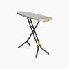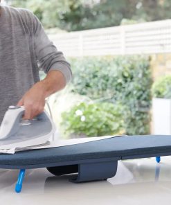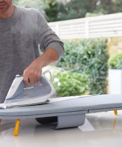 This ironing board offers a fast and simple setup, with five adjustable height settings and an extra-large, retractable steam iron rest. When not in use, the board folds down slimly for compact storage.
