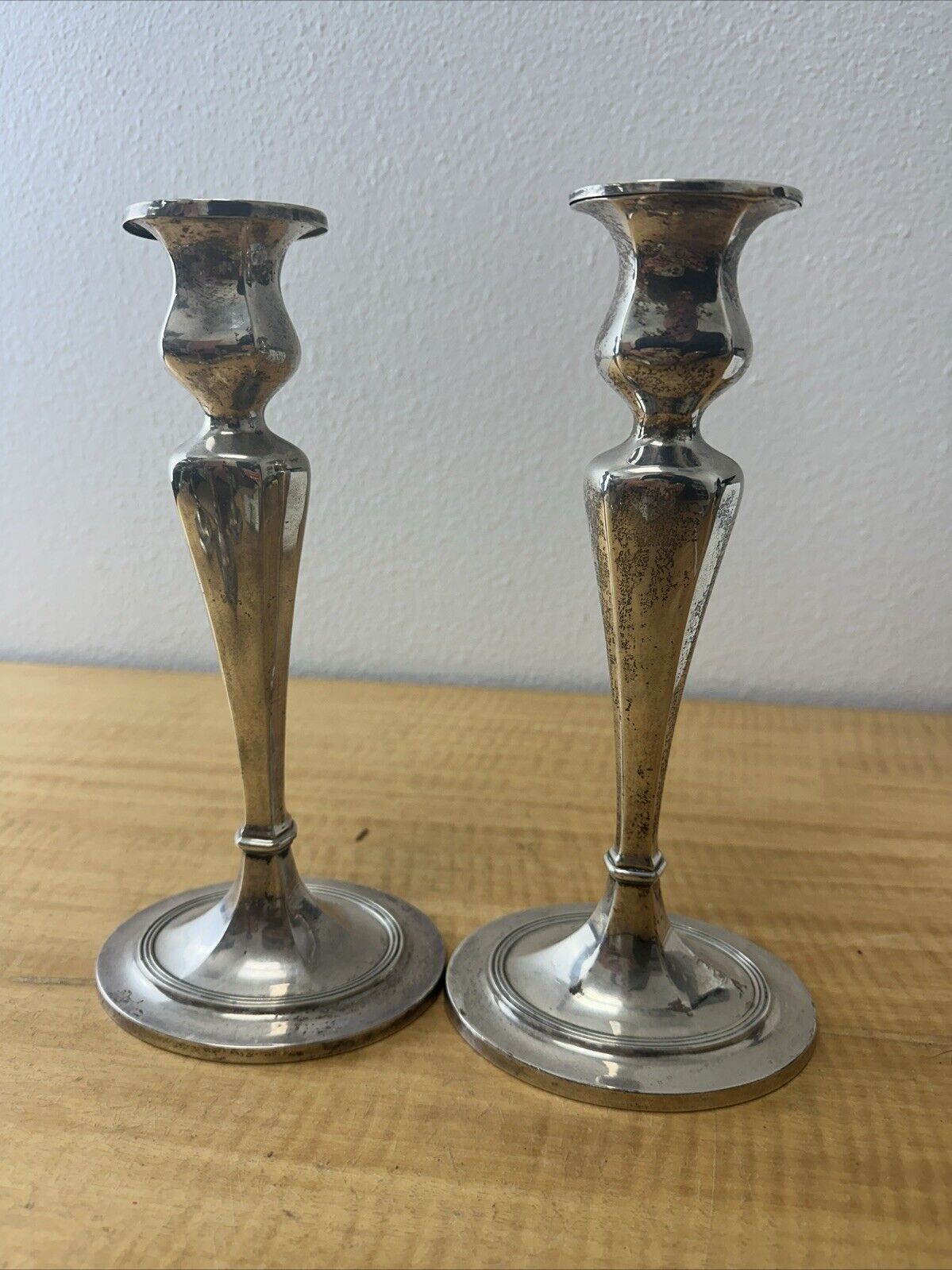 Gorham Pair of 1920 Sterling Silver Candlesticks in Art Deco Style