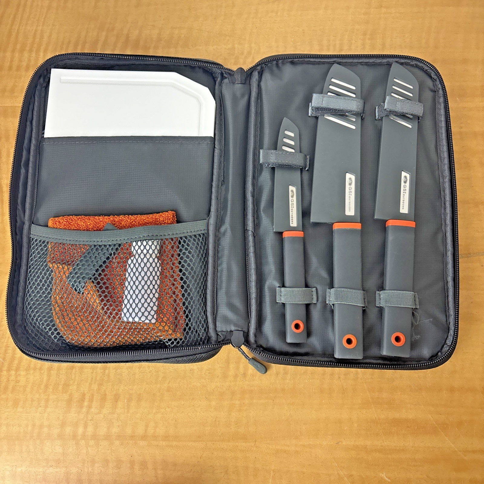 GSI Outdoors, Santoku Knife Set, For Camping, Grey, Cutting Board, Towel