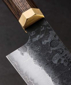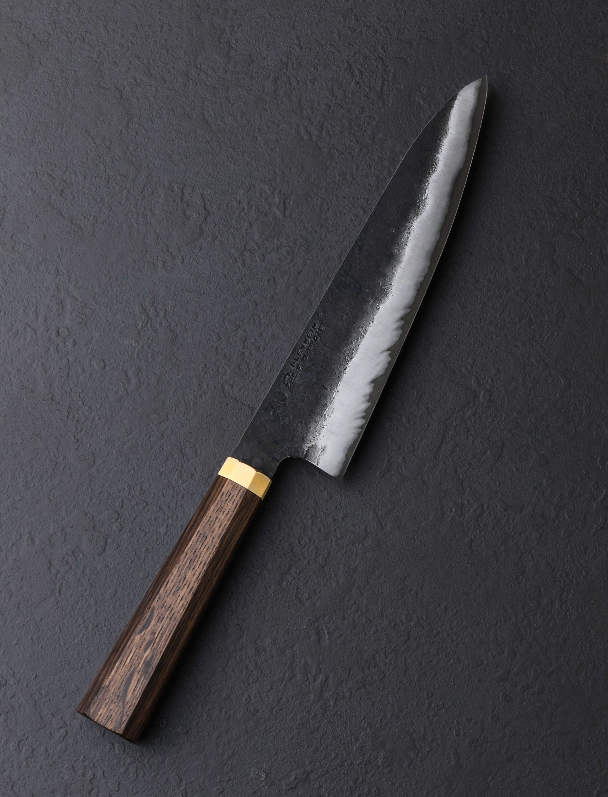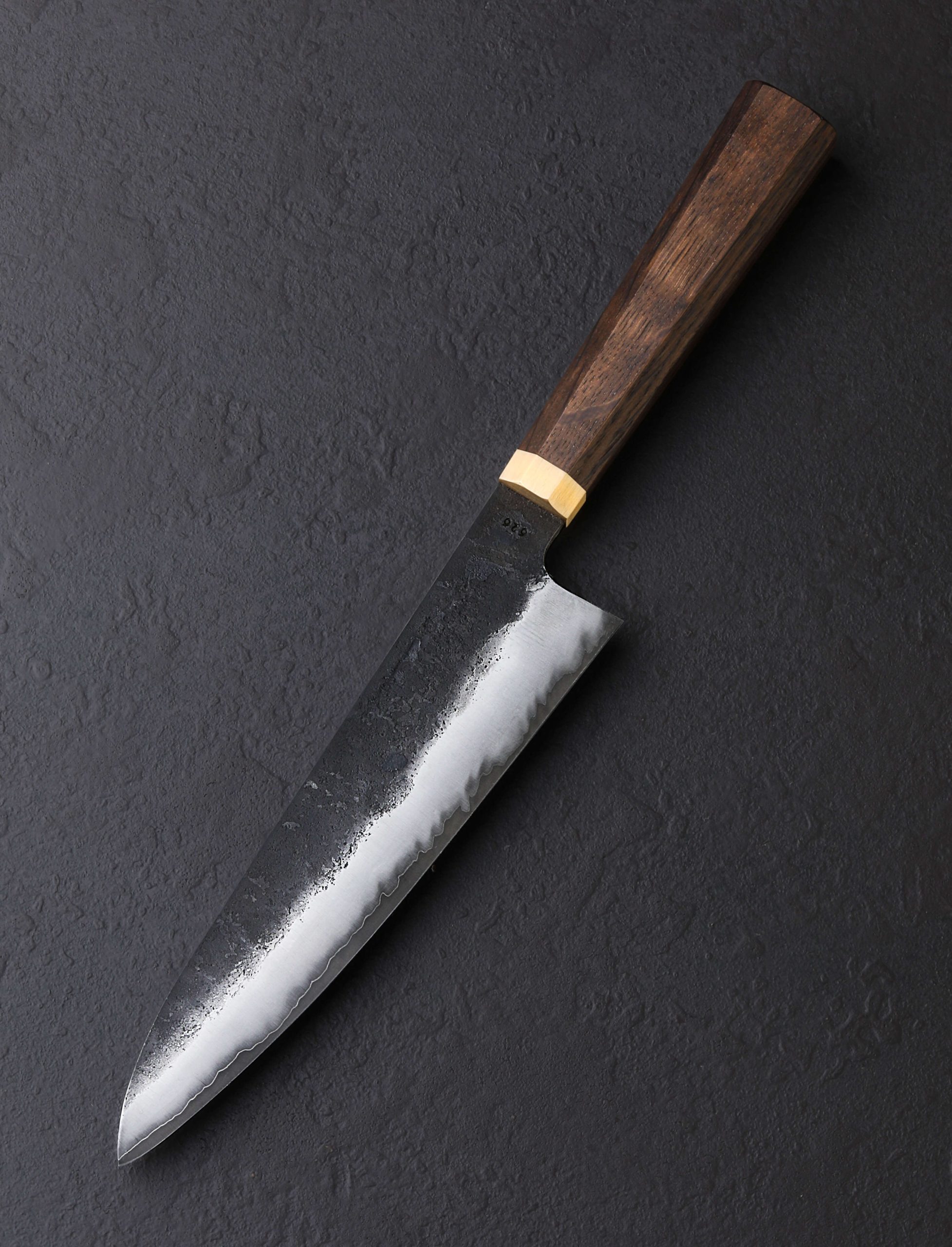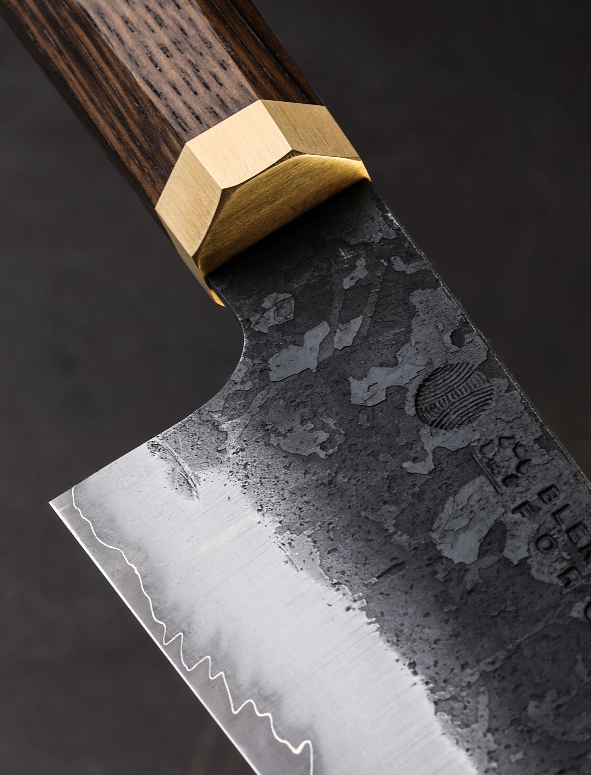 For the cook who needs a single blade to do it all, Living Steel’s 185mm gyuto is the versatile mid-size cutting tool to slice, chop, and dice with ease. Hand-forged in London in collaboration with Bleinheim Forge, it’s the best-looking workhorse in any kitchen. And exclusively for our Living Steel collection, the Blenheim team developed this premium steel formula using Aogami Super at the core with a layer of pure nickel and finally, cladding of mild steel. In traditional Eastern style, the edge curves upward less, making it ideal for pull cuts and long, precise slices. The fine tip is ready for detail work, and the blade’s compact length not only makes enjoyable work of delicate, detail-oriented tasks, it also makes this knife excellent for small kitchens and smaller cutting boards.